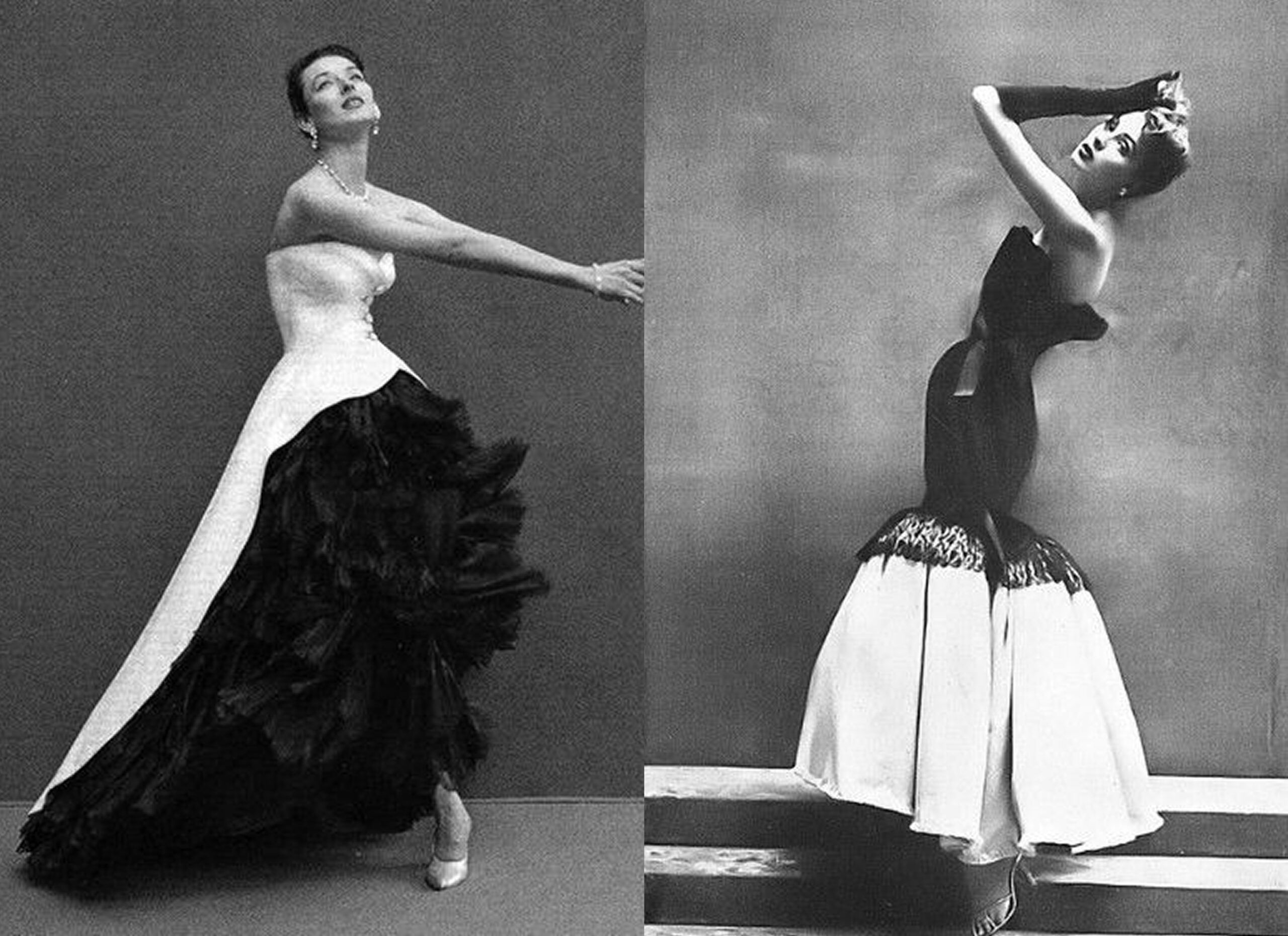 Популярность Balenciaga в Париже стала результатом сочетания нескольких факторов — точности кроя, экспериментальных форм и архитектурного взгляда на моду. Его силуэты отличались скульптурностью и независимостью от классической женственности. Трапеции, «коконы», силуэты-баллоны, расширенные плечи и мягко обозначенные талии создавали новую пластику фигуры — графичную, но не жесткую. Эти линии рождались не из декора, а из структуры ткани и математически выверенного объема.