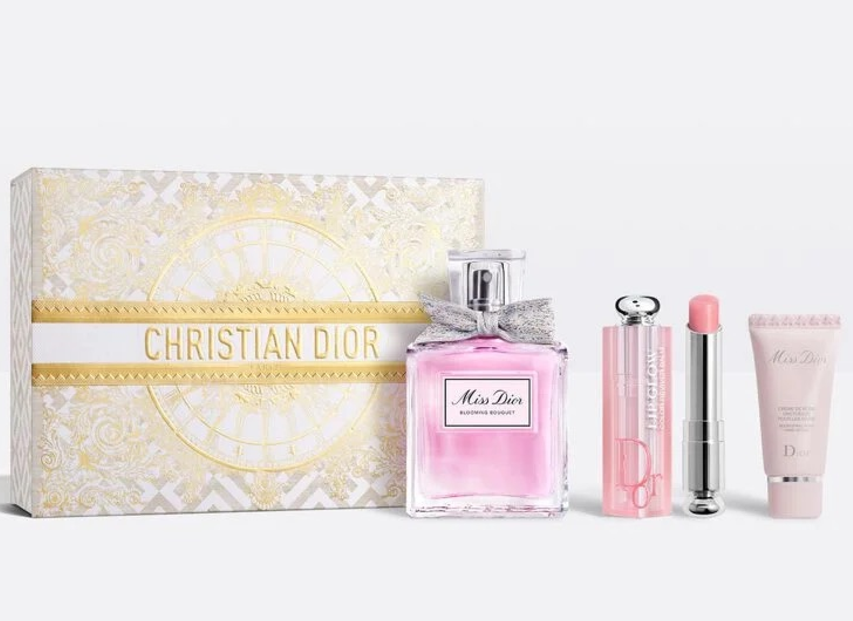 Этот набор прекрасен и формой, и содержанием. Упаковка в виде белой коробки с откидной крышкой украшена сложным золотистым узором. Работая над ним, итальянский художник Пьетро Руффо черпал вдохновение в эстетике садов вокруг дворца Тюильри. Продолжить приобщение к прекрасному помогут и герои этого сета: туалетная вода Miss Dior Blooming Bouquet, блеск Dior Addict Lip Glow, подчеркивающий естественный оттенок губ, и крем для рук с ароматом розы. Весеннее настроение в разгар зимы гарантировано.
