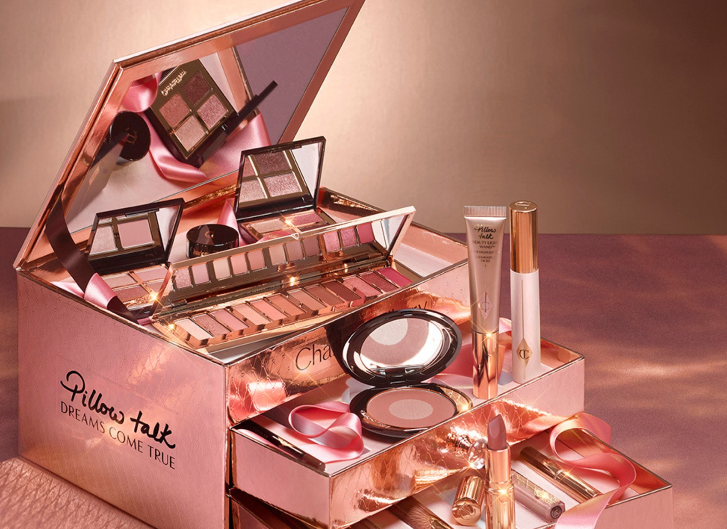 Лимитированный подарочный набор Charlotte Tilbury — настоящая beauty-станция, внутри которой есть все необходимое, чтобы создать макияж своей мечты. Начать стоит с кейса: его пудровый оттенок и рельефный узор в ромб напоминают об уютном стеганом одеяле. В конструкции две выдвижных полки и откидная крышка с большим зеркалом. Состав сета выше всяких похвал: в него вошло 13 бестселлеров из коллекции Pillow Talk, созданные Шарлоттой Тилбери, звездным визажистом, с которым сотрудничают Пенелопа Крус, Амаль Клуни, Кейт Мосс и Ким Кардашьян.
