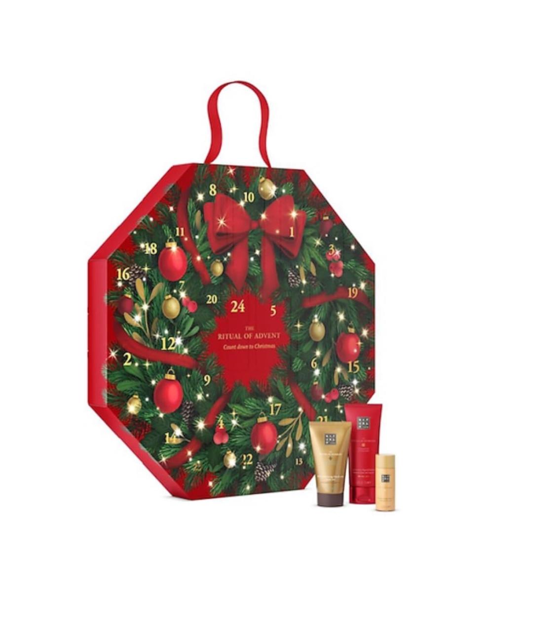 Бренд Rituals, начавший свою историю в королевстве Нидерланды в 2000 году, построен на стыке двух концепций: древней восточной мудрости и западной практичности. Его коллекции, ориентированные на удовольствие от домашних уходовых ритуалов, делятся на несколько линий — Ayurveda, Hammam, Karma, Jing и др. Каждая из них отсылает к культуре разных стран и воплощает самые приятные ее аспекты. Знаковые продукты из этих линий собраны в оригинальном адвент-календаре для женщин. Картонный бокс повторяет форму и расцветку хвойного венка. 24 окошка напоминают традиционные рождественские календари. За каждой дверцей прячутся миниатюры — для волос, кожи лица и тела, душа и бани, — а также 4 мини-свечи, чтобы наполнить дом праздничными ароматами.