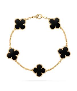 Самый популярный цвет — черный оникс в оправе из желтого золота, за ним следуют малахит и перламутр. Van Cleef Onyx стоит дорого из-за процесса обработки камня и ручной работы — каждая подвеска требует точной огранки оникса, чтобы он идеально встал в оправу, затем мастер вручную обрамляет его золотыми бусинами. Оникс долговечен: твердость по шкале Мооса составляет 6.5-7, что делает его устойчивым к царапинам при аккуратном ношении.