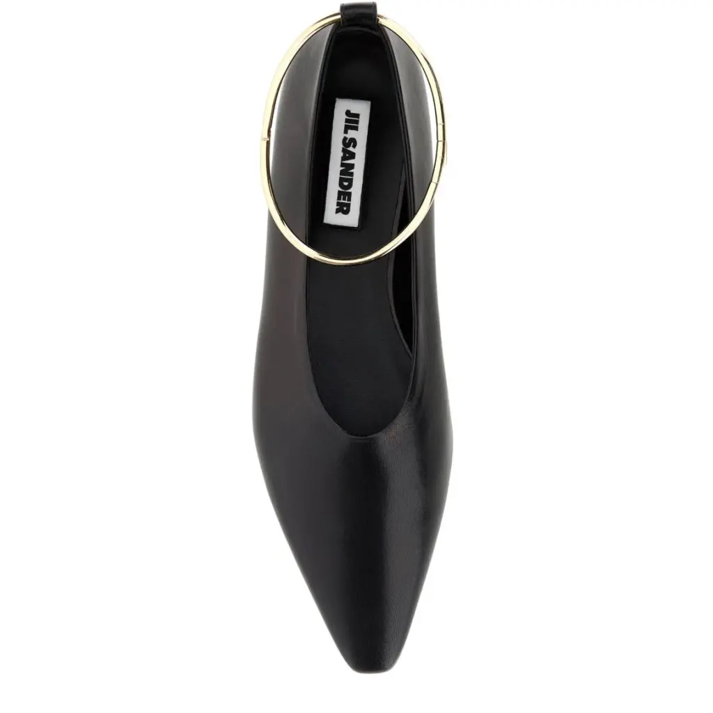 Black leather ballerinas . Exterior: 100% Ovine leather Interior: 100% Leather Sole: Leather