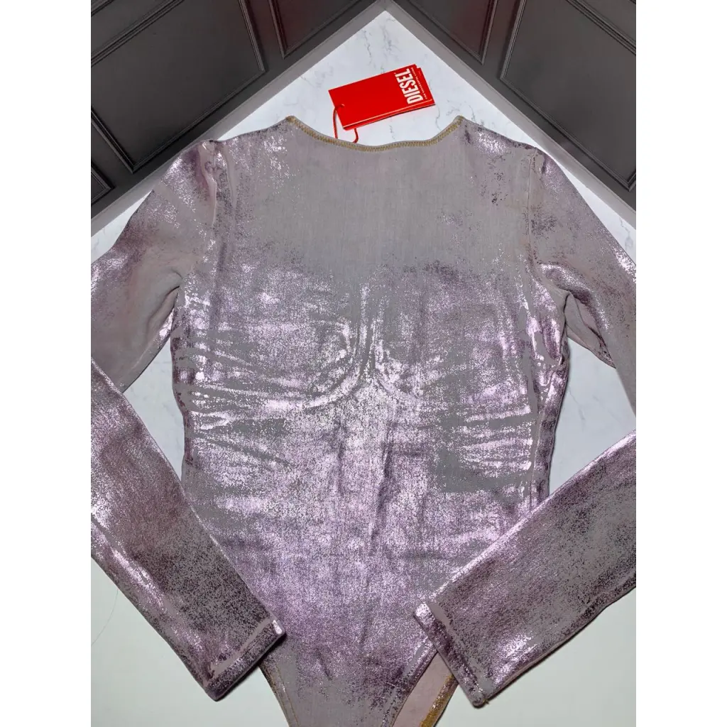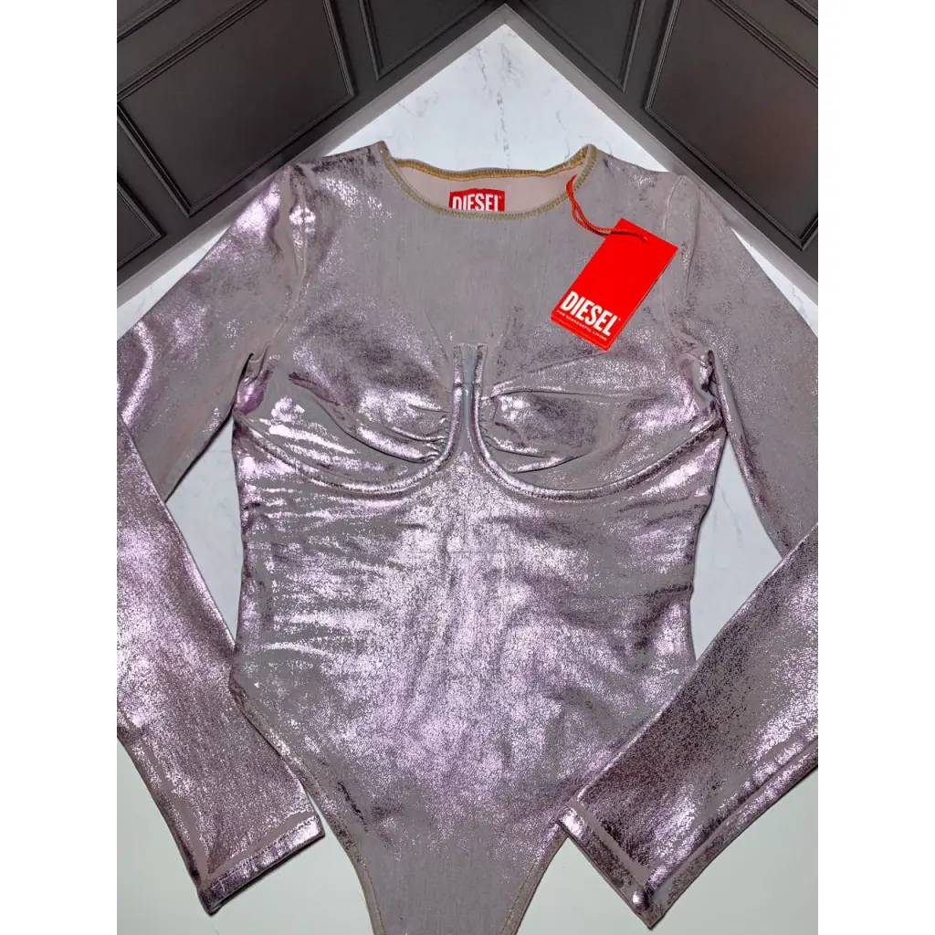 Свежее с весенне-летнего подиумного шоу 2024 года, это женское боди с длинным рукавом является эмблемой экспериментального мастерства Diesel. Шовка в форме бюстгальтера и высокий крой определяют дизайн.