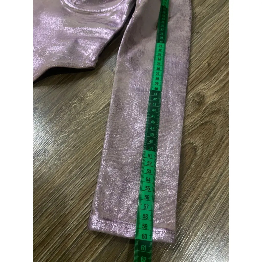 Метализированное покрытие нанесенное на деним стрейч. Хорошо тянется. Сидит очень комфортно.