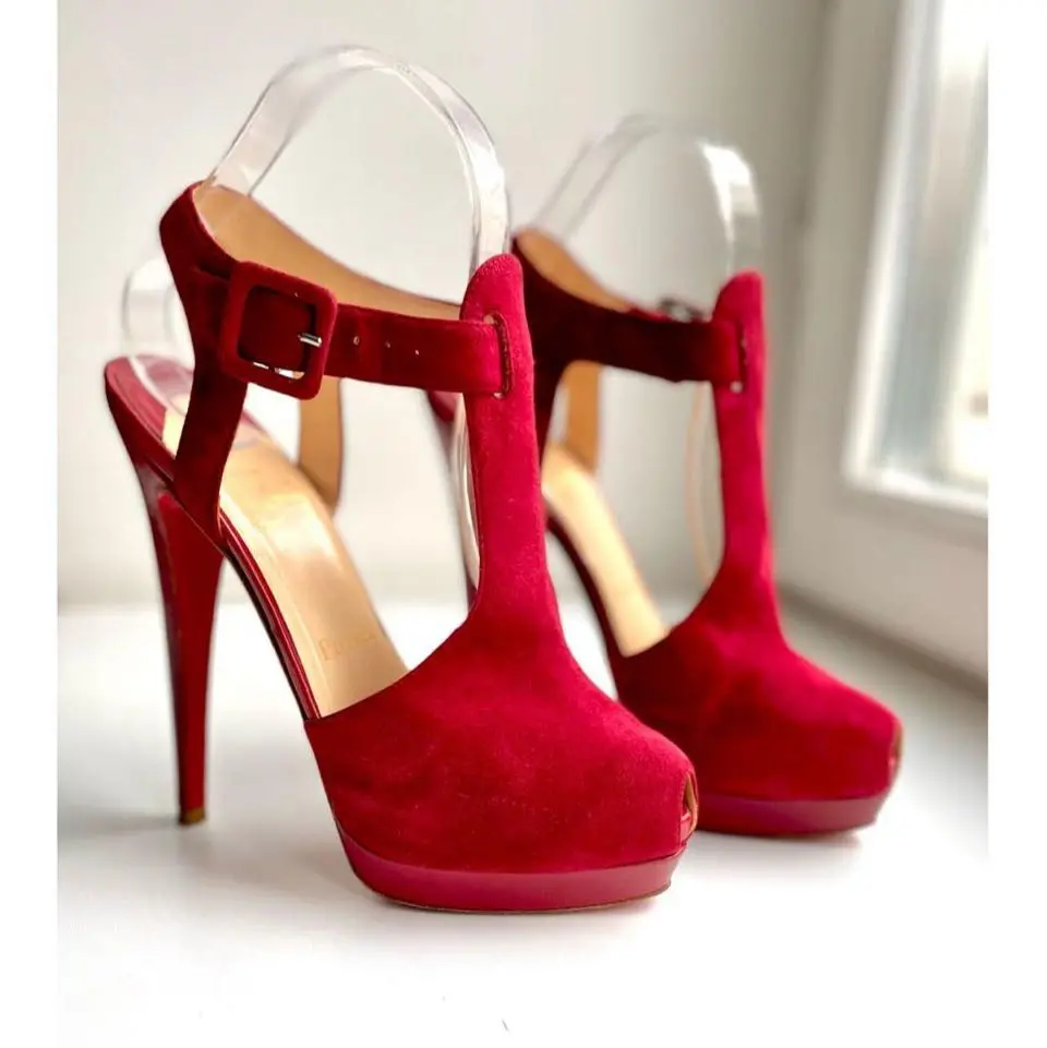 CHRISTIAN LOUBOUTIN Бордовые замшевые босоножки