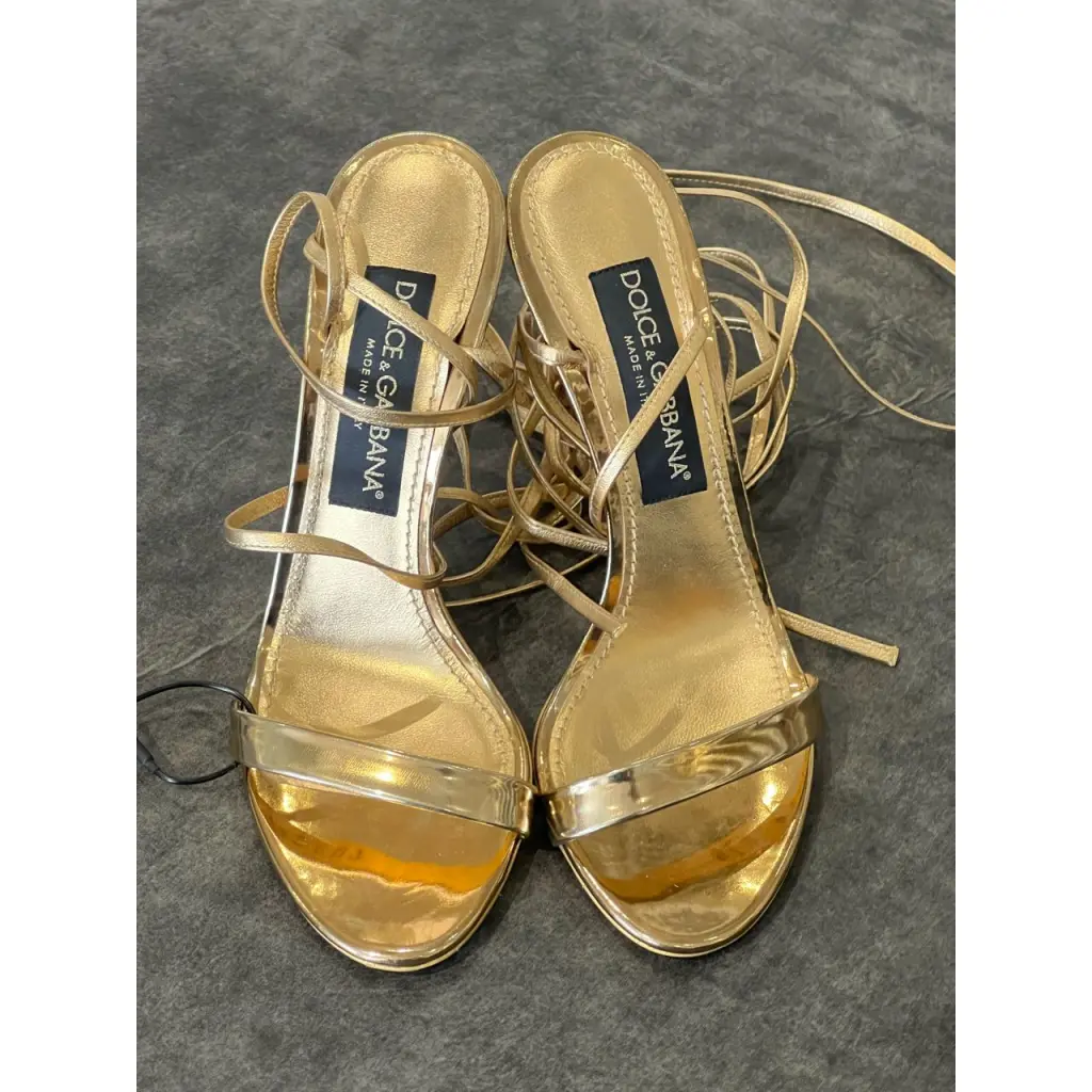 DOLCE&GABBANA Золотые кожаные босоножки