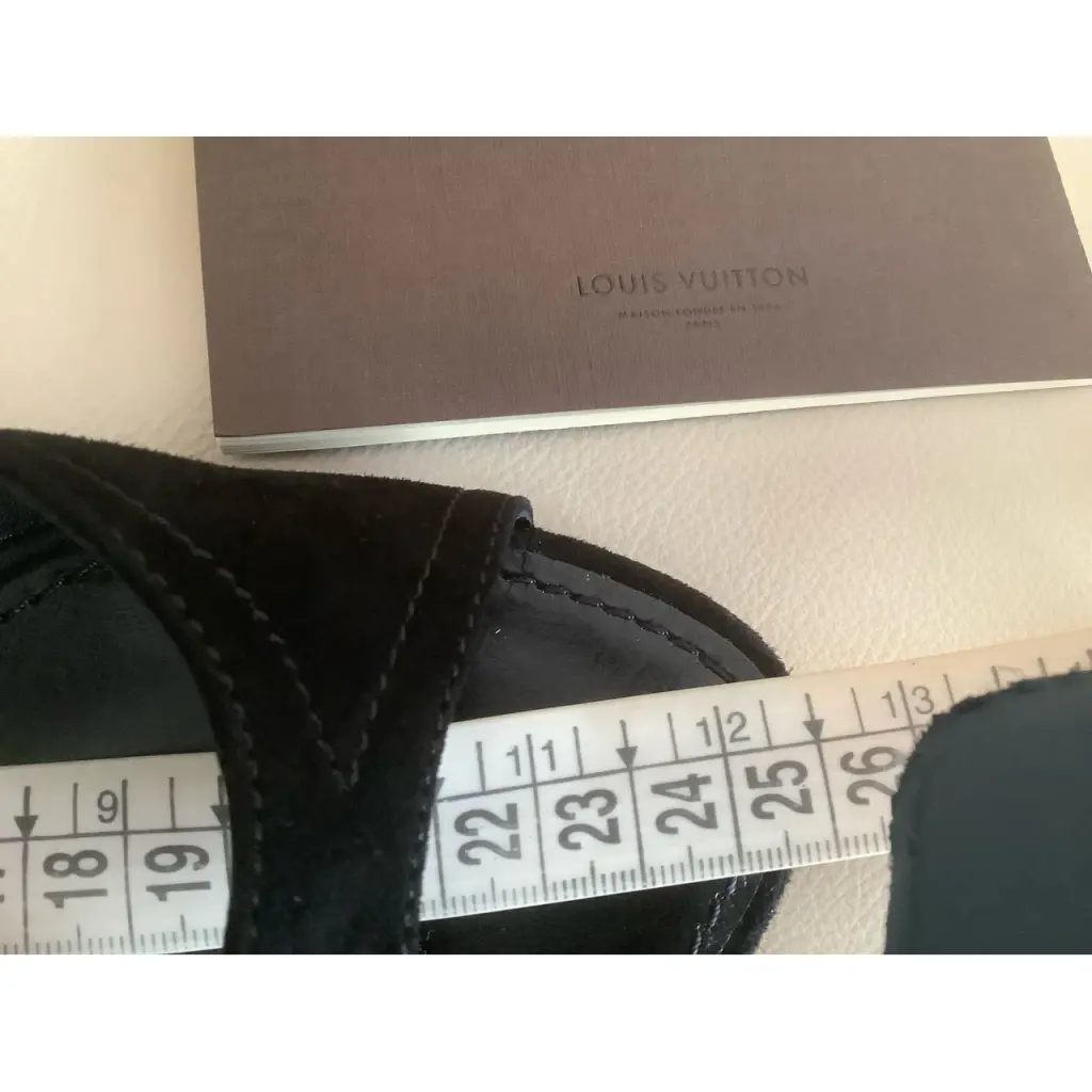 Босоножки LV на танкетке. Замша. Цвет чёрный. Размер 38. Очень удобная колодка. Лёгкие, почти невесомые. За счёт того, что ремешки обхватывают щиколотку, зрительно удлинняется нога. Новые. В комплект входит коробка, пыльник, а также фирменная профилактика.