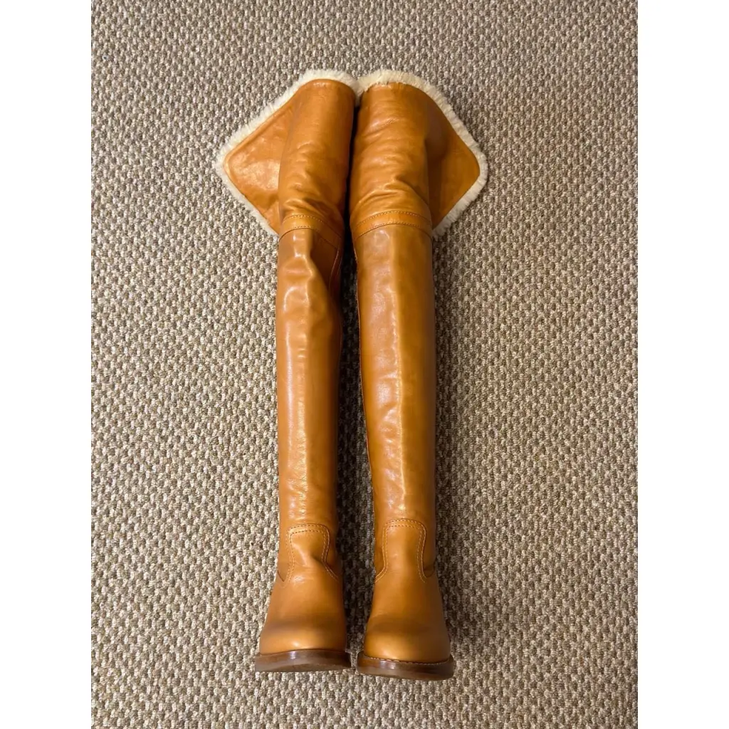 Светло-коричневые ботфорты Folco из осенне-зимней коллекции дословно цитируют обувь марки из