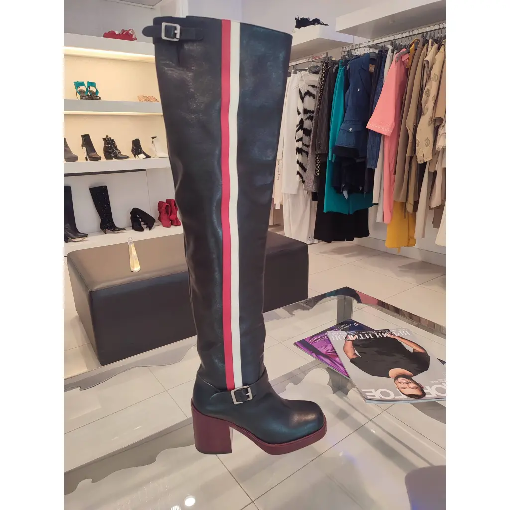 CHRISTIAN DIOR Черные кожаные ботфорты