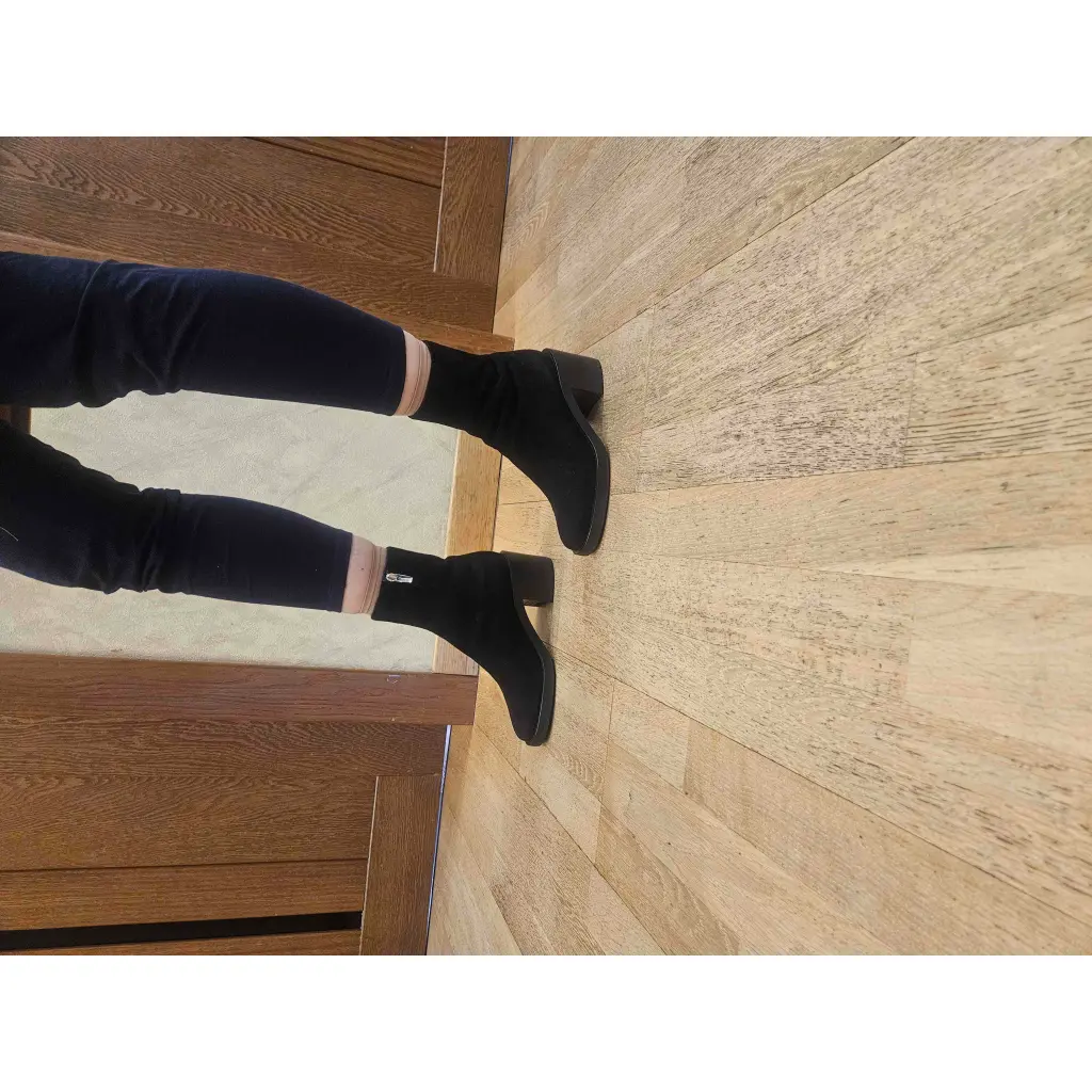 Черные замшевые ботильоны на каблуке. Зимние. Натуральный мех овчина. Каблук очень удобный, устойчивый, 6 см. Сделана профилактика для зимы, чтобы не скользили. Состояние очень хорошее.