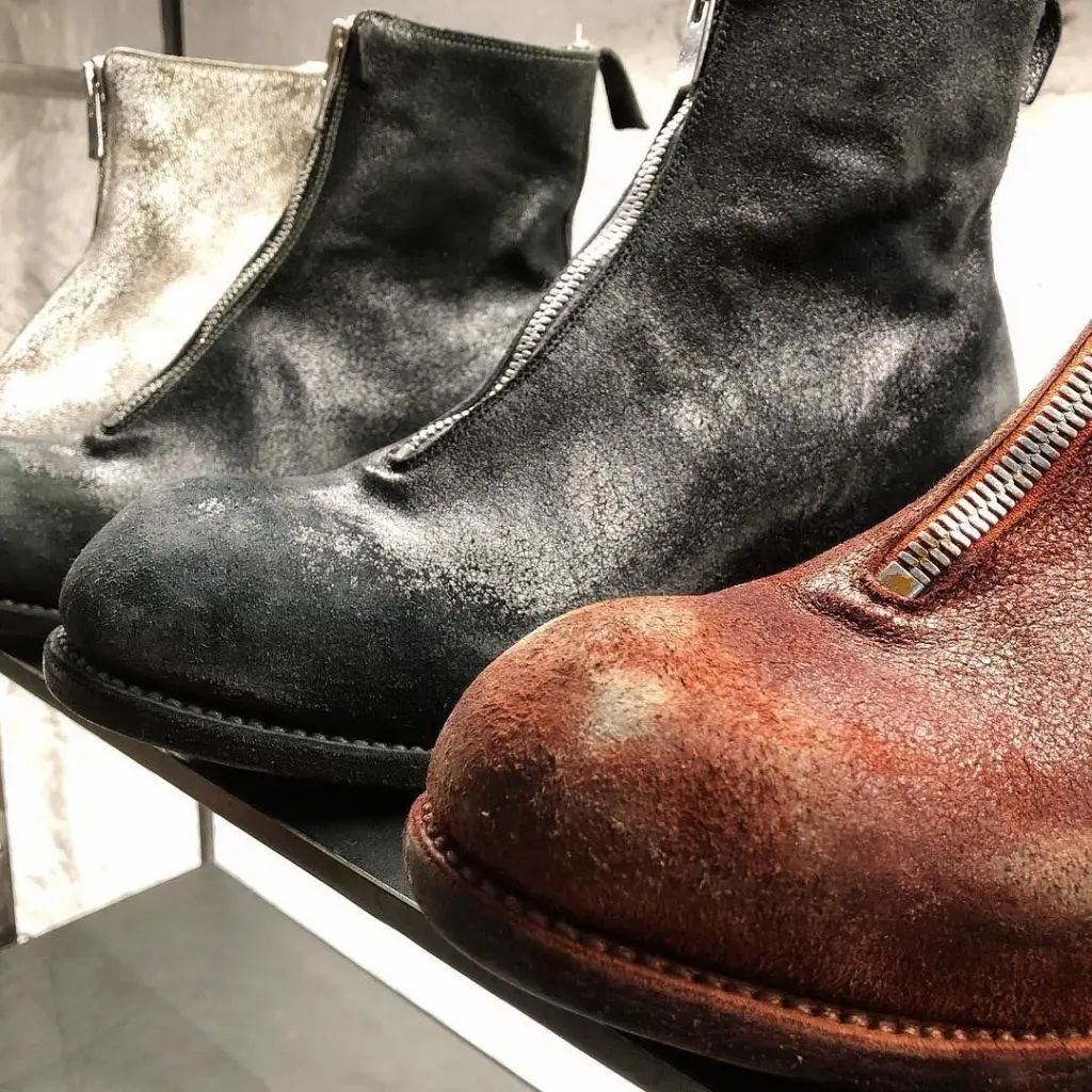 Архивные ботинки 2021-ого года. Раннее воплощение уникального взгляда Guidi на моду, отражающее ремесленное мастерство и стремление эксперементировать.