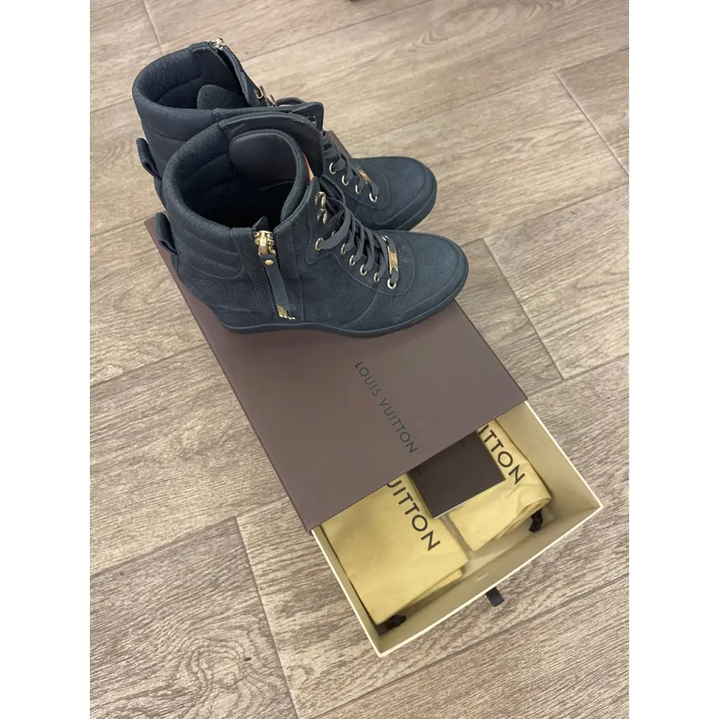 LOUIS VUITTON Темно-синие кожаные ботильоны