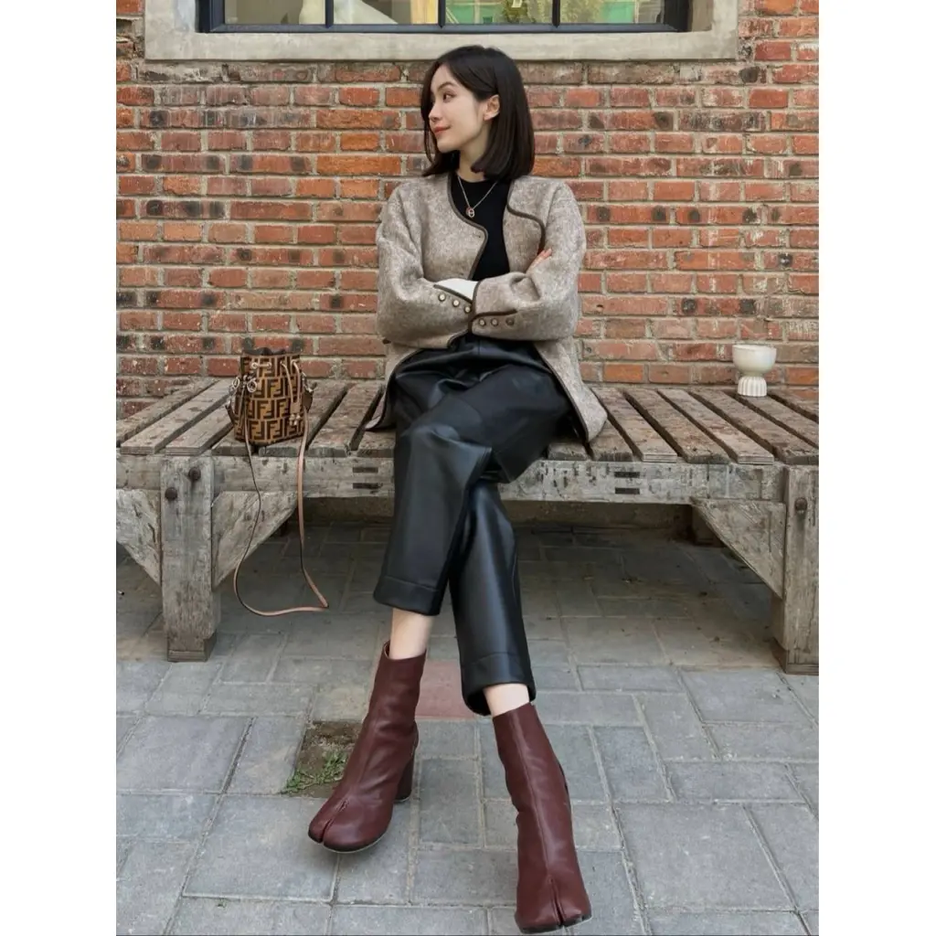 Maison Margiela Bordeaux Grained Leather Tabi Ankle Boots 8 cm