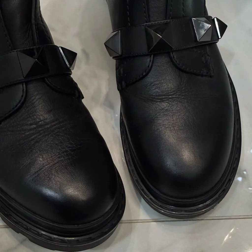 Ботинки Valentino Состояние очень хорошее Свежая коллекция Нет одного шипа в месте, которое не видно (указала на фото) Маркировка размера 38 Бутик 156.000₽