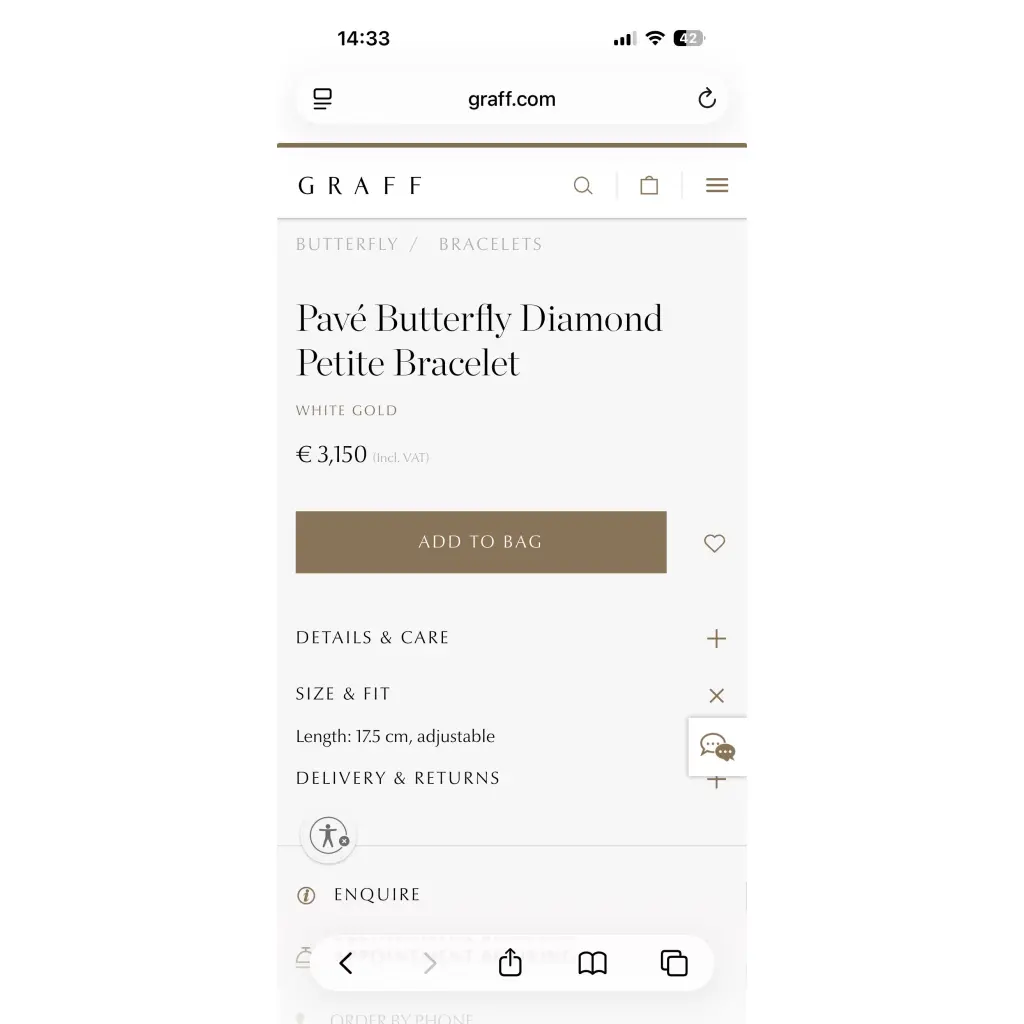 Единый размер, длина 17.5 см, с возможностью регулировки длины. Смотрится на руке очень красиво и женственно