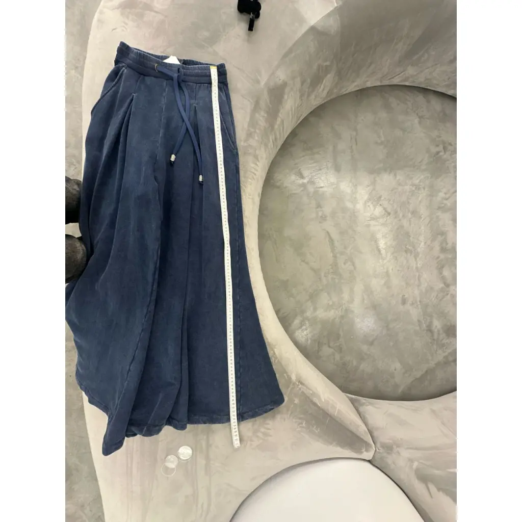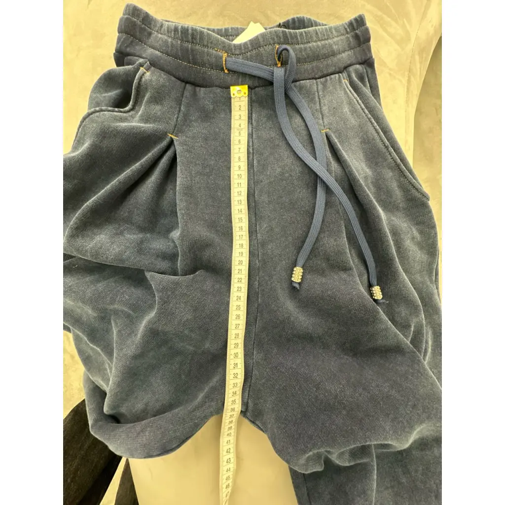 Широкие брюки от бренда Giuseppe di Morabito свободного кроя выполнены из хлопка. Модель с двойными вытачками спереди украсили фирменной металлической эмблемой, а эглеты шнурка, регулирующего пояс-кулиску, — кристаллами.