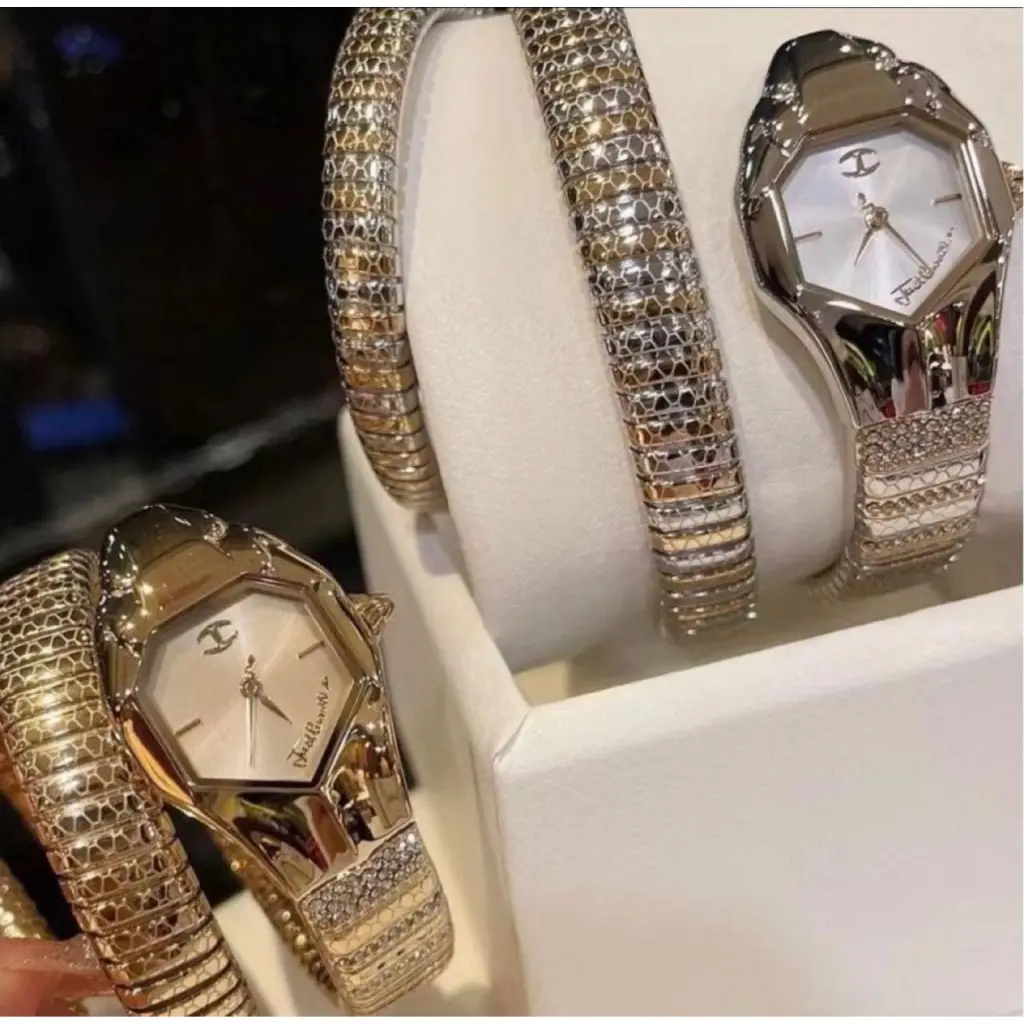 Новые часы Кавалли в виде змеи. Очень эффектные, в стиле Bvlgari. В комплекте коробка, сертификат Оскелли, бирка. На руку до ~16 см (моя на фото рука 15.5 см) Без торга, эта модель снята с производства.