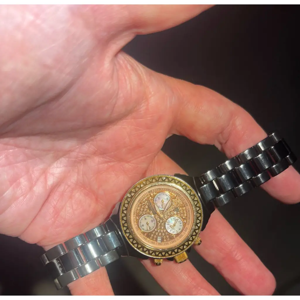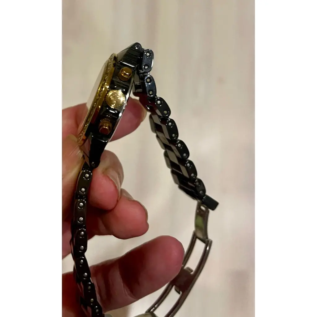 Очень красивые, стильные и эффектные часы хронографы керамические, цвет керамики черный , циферблат покрыт золотом , украшен натуральными бриллиантами (140 камней) , часы б/у ,в хорошем, рабочем состоянии , всё учтено в минимальной стоимости .Это самая дорогая, люксовая линейка часового бренда Lancaster .Продаю в 10 раз дешевле от первоначальной стоимости .