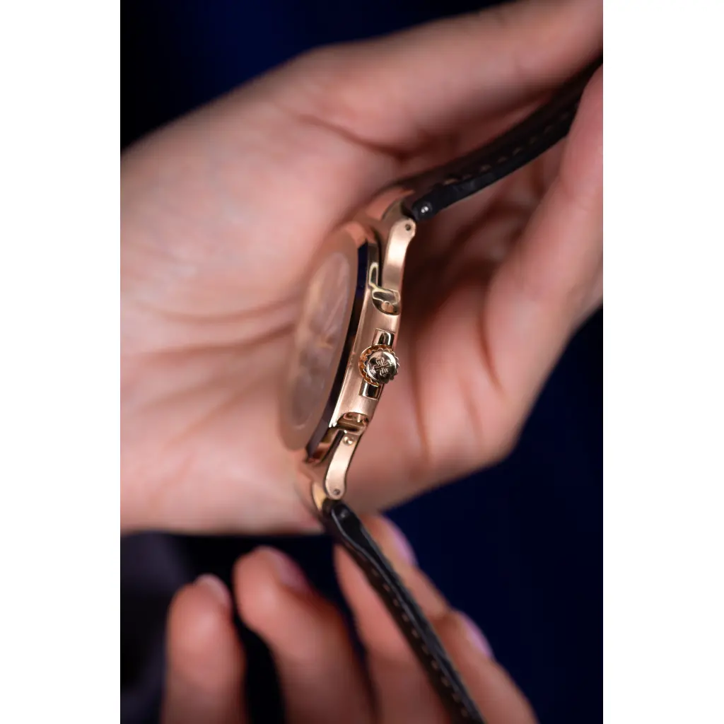 Материал корпуса - Розовое золото, материал ремешка/браслета - кожа.