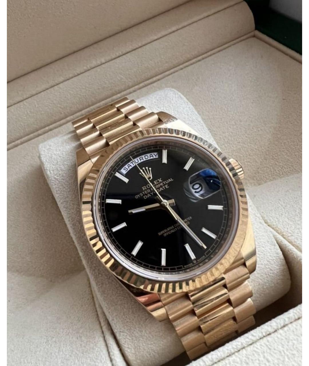 В продаже оригинальные часы ROLEX DAY-DATE 40 MM YELLOW GOLD 228238 BLACK DIAGONAL MOTIF DIAL