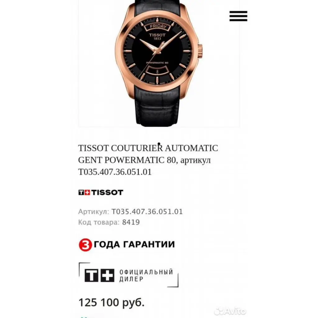 Модель: Часы Tissot Couturier