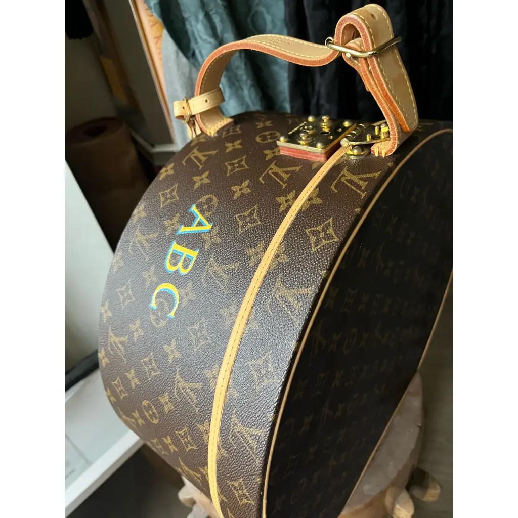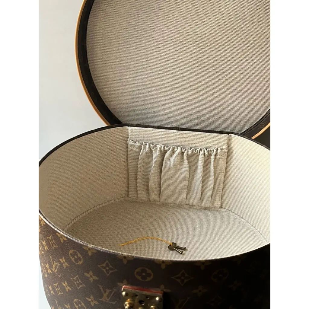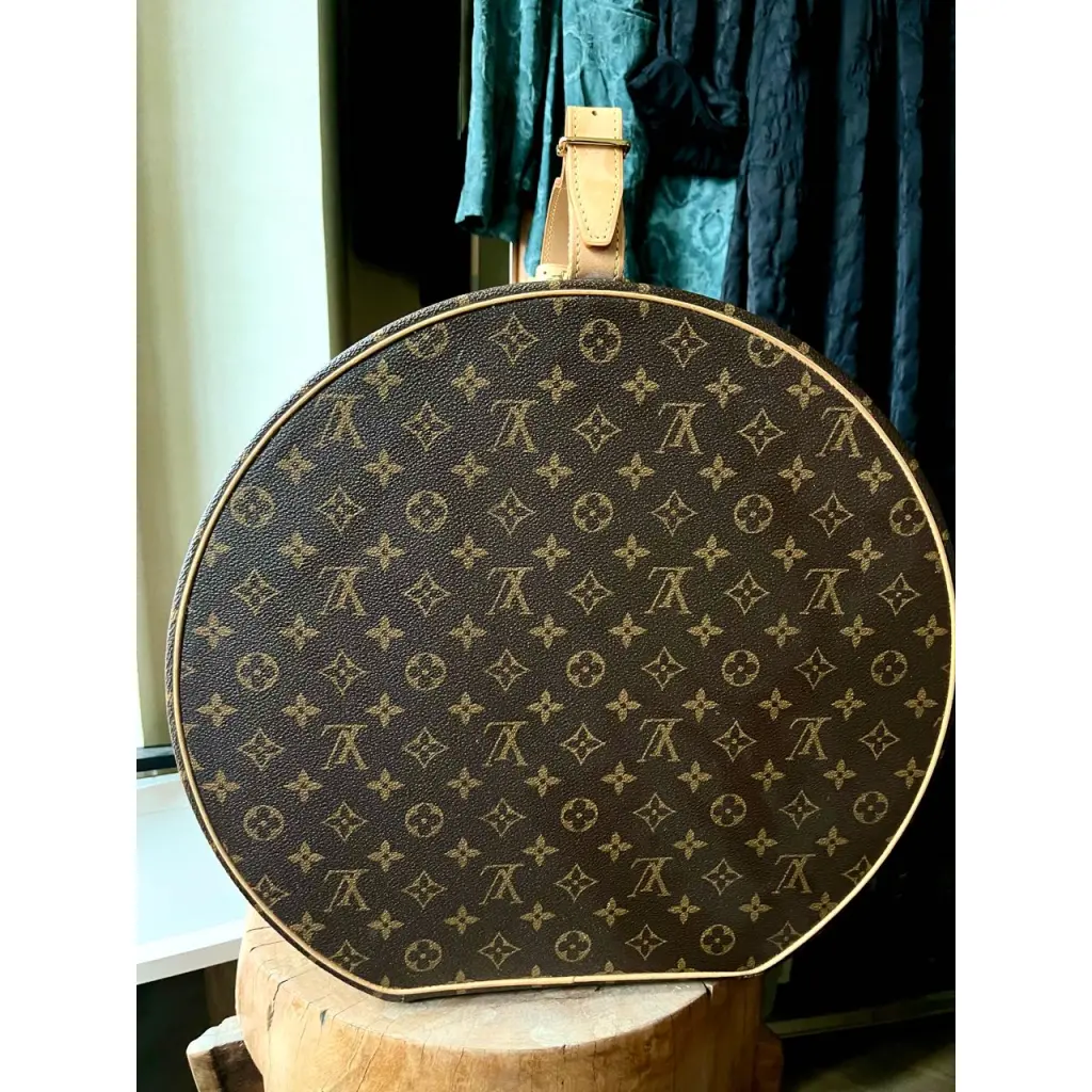 Шляпная коробка Boite Chapeau 30, LOUIS VUITTON, коллекция Monogram. Вощеная канва Monogram (коричневый old flower), натуральная яловая кожа, подкладка изо льна, фурнитура из золотистой латуни, ключики - 2 шт.