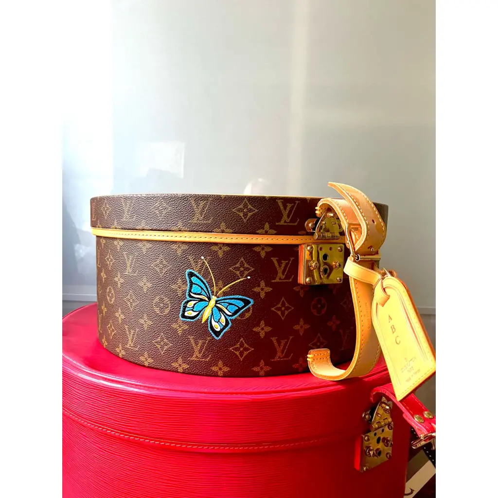 **Расписана в художественном департаменте бутика LV в Париже. Такие же бабочки и инициалы нанесены на таких же коробках по личным заказам королев Испании и Таиланда.