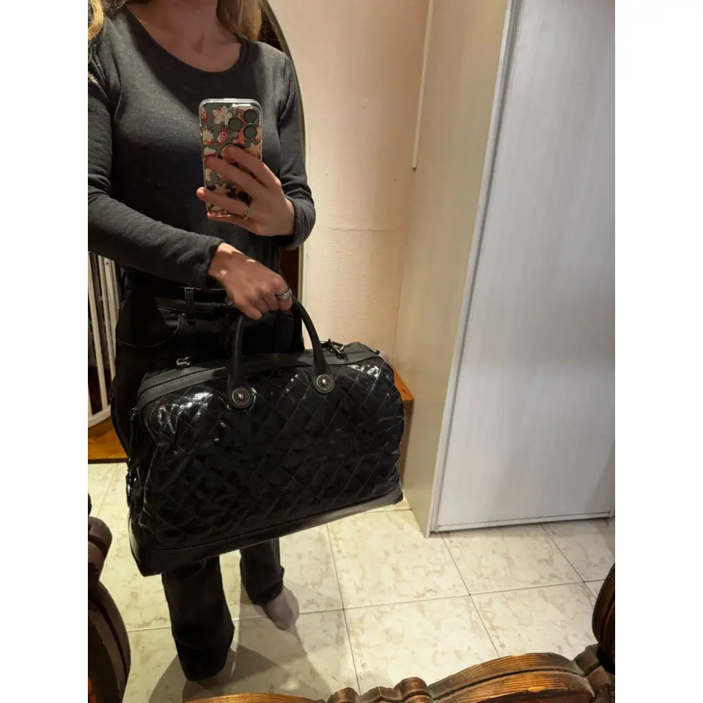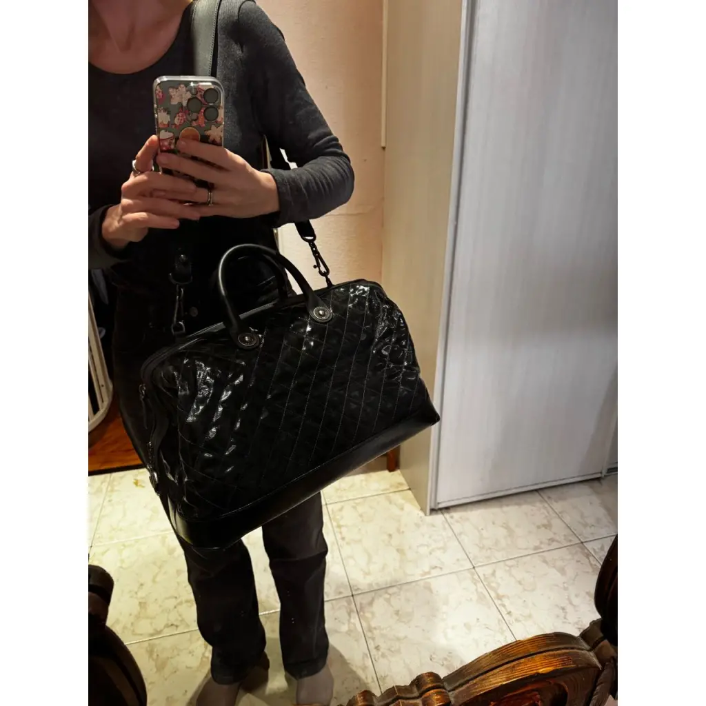 Саквояж CHANEL темно-серого цвета из лакированной кожи. Есть производственный дефект - кожа мнется под лаком - от этого появляются белые полоски. Дефектов на внешней части нет. При носке выглядит словно так и было задумано. В комплекте идет длинный ремень.