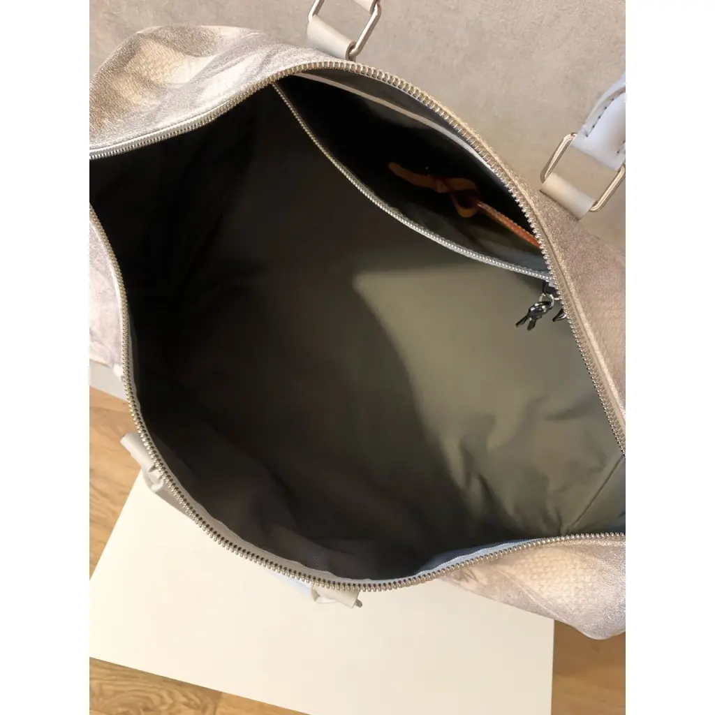Новая дорожная сумка! В носке не была! Но имеются нюансы: на кожаной бирке пятно (патина) и на канте на на дне есть микроскопическая потертость, царапина (фото прилагаю). Внутри один маленький карман.