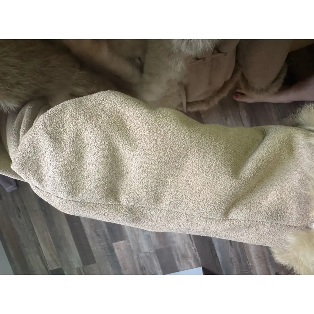 Дубленка из мутона после дорогой химчистки и реставрации меха. Оригинальный мех к сожалению вылез, и заменили его на такой же новый.