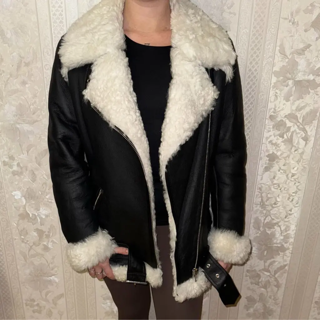 Дубленка в отличном состоянии Сзади на спинке есть небольшое пятно.(устранимое) Внутри оовчина,очень теплая Замеры : под подмышками 47-48 Длина рукава 56см Длина по спинке 74см