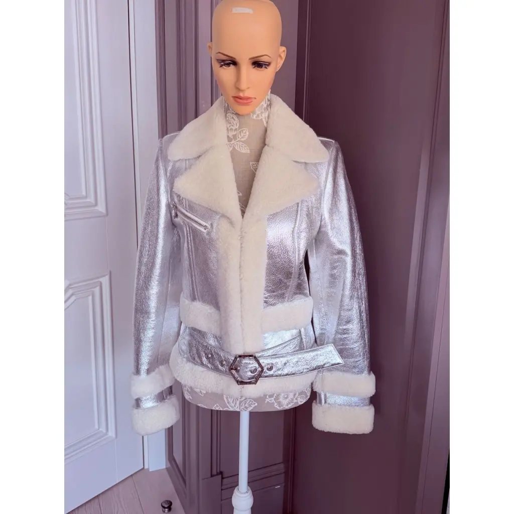 PHILIPP PLEIN Серебряная меховая дубленка