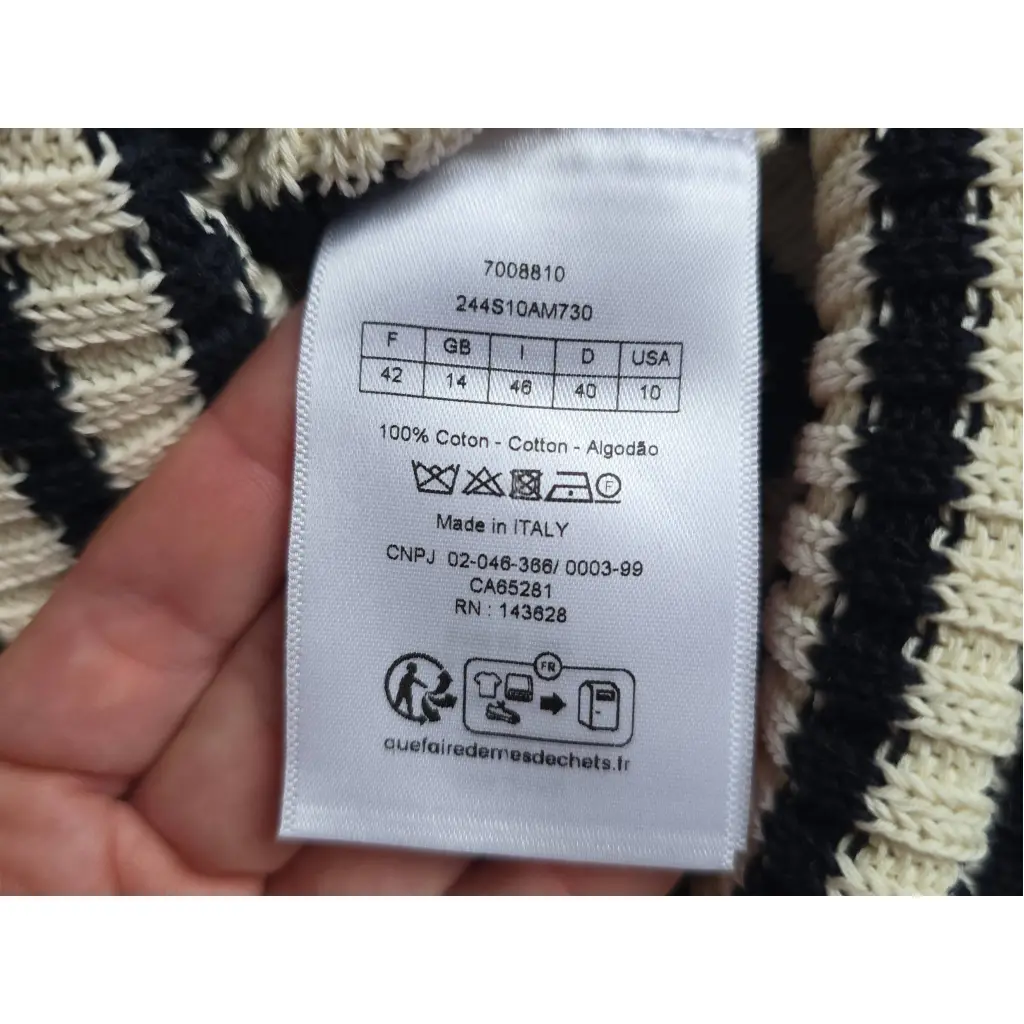 Продаю свитер (джемпер) от Christian Dior в отличном состоянии. Размер S , свободный, рукава длинные. Этот свитер — часть коллекции Dioriviera от Christian Dior. Он выполнен из хлопкового трикотажа в рубчик кремового и темно-синего цветов, украшен фирменным мотивом «Dior Marinière», а также вышитой звездой Дома и надписью Christian Dior на груди.
