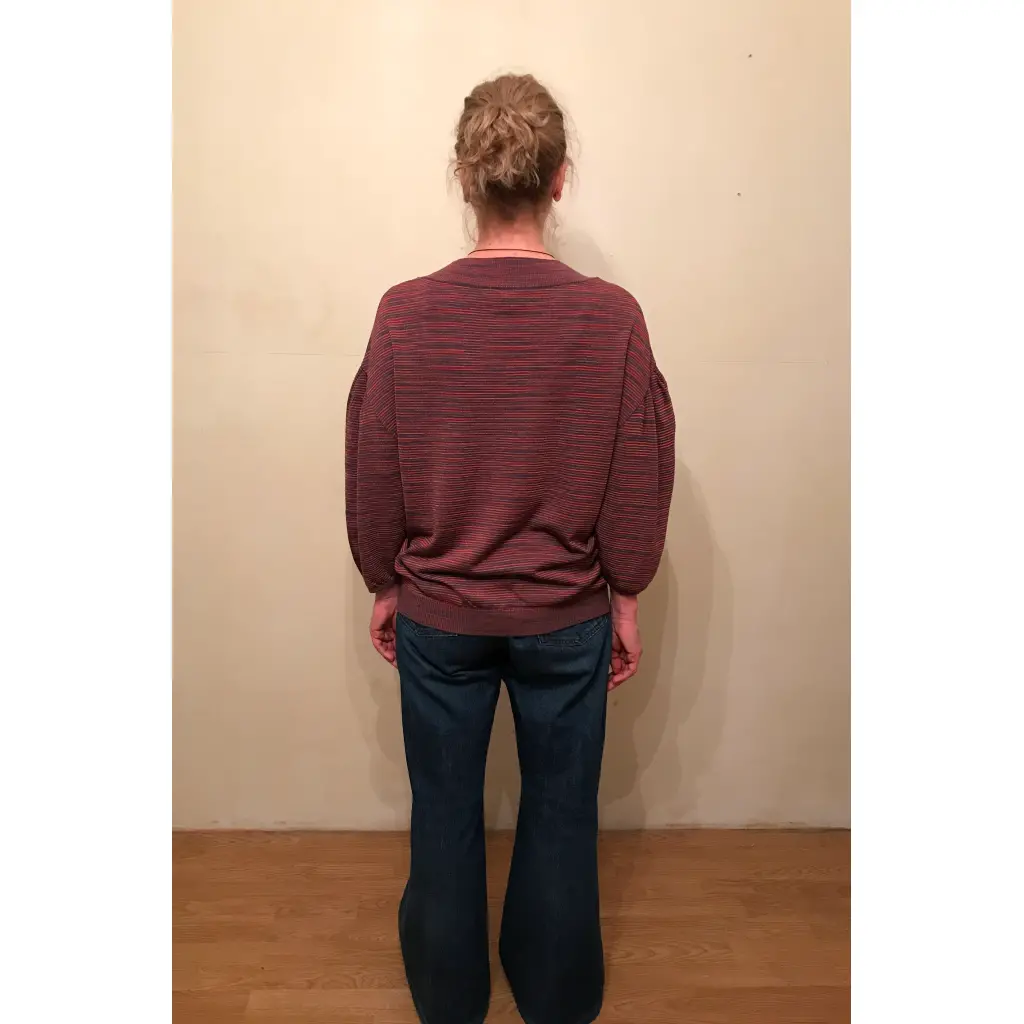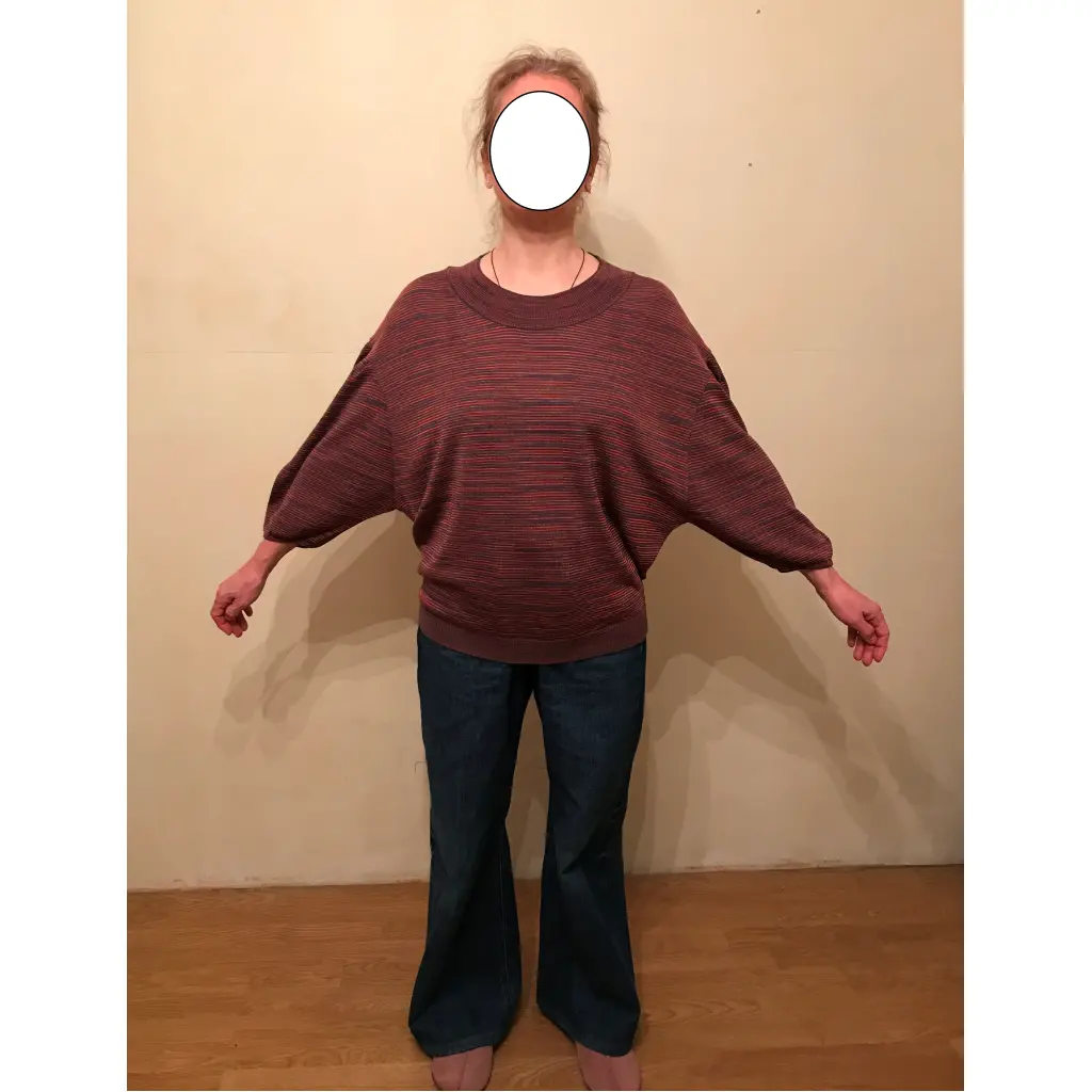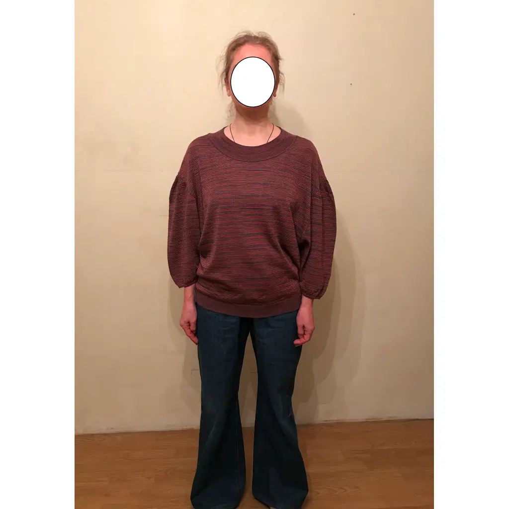 В составе есть шерсть. Бирки с составом не сохранилось. Рукав фонариком 3/4 со спущенным плечом. Одета пару раз. Оверсайз.