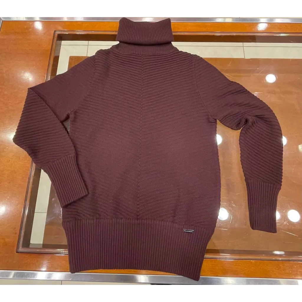 -Водолазка от Paul & Shark полуприлегающего силуэта. -Модель выполнена из шерсти крупной вязки бордового цвета. -Высокий прилегающий ворот, длинный рукав.