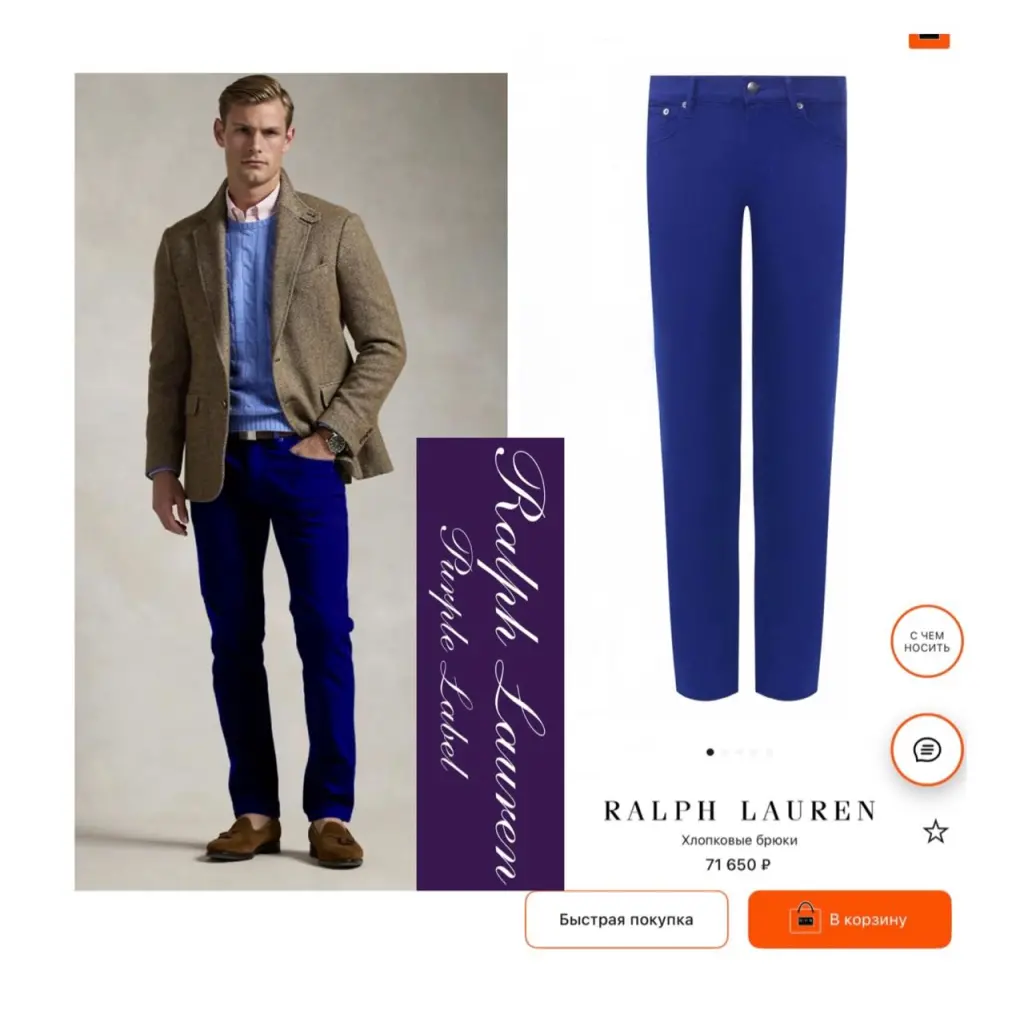 Ralph Lauren Purple Label — это люксовая линия мужской одежды бренда Ralph Lauren, запущенная в 1994 году. Линия была создана как ответ на спрос на ультра-роскошную одежду и позиционируется как верхний эшелон бренда, конкурирующий с самыми престижными домами моды. Изделия Purple Label отшиваются в Италии и отличается высоким качеством, изысканным дизайном и использованием лучших материалов.