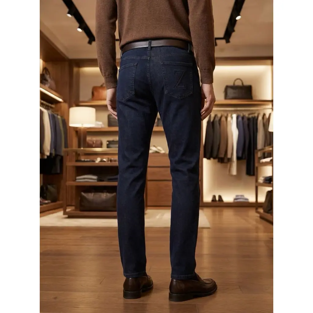 Команда марки представила свой вариант темно-синих джинсов. Комфортнее аналогов модель делает облегченный деним, в котором часть хлопковых волокон заменили на шелковистый антибактериальный лиоцелл. В состав материала добавили эластан, поэтому брюки лучше садятся по фигуре и не сковывают движения