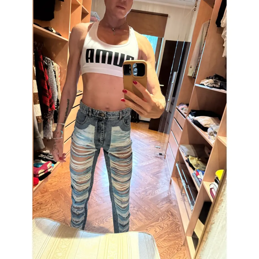 Зауженные джинсы, средняя посадка. По передней стороне вставка из прозрачной сетки, за счет которой декоративная часть не цепляется за колено. Смотрятся бомбически. Передача курьеру возможна на следующий день после после оплаты.