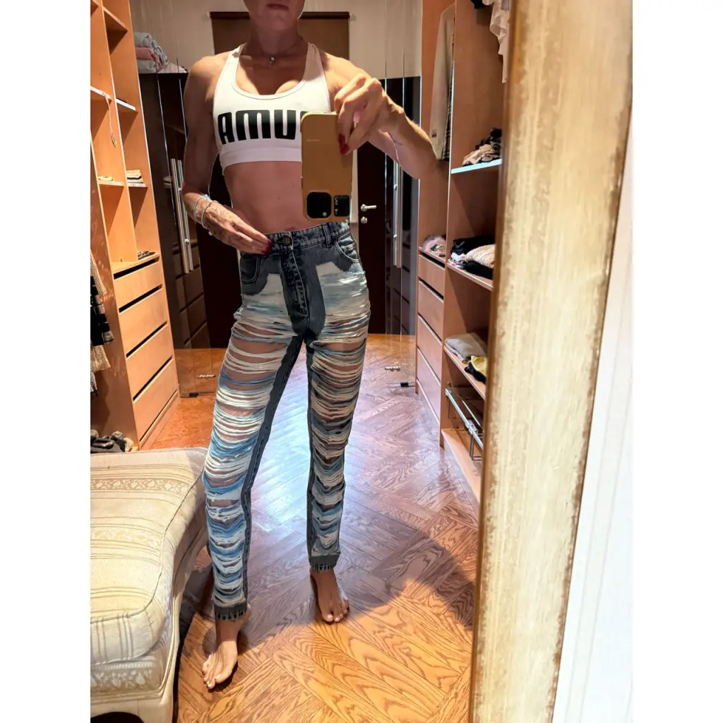 CHANEL Голубые хлопко-полиэстеровые джинсы слим