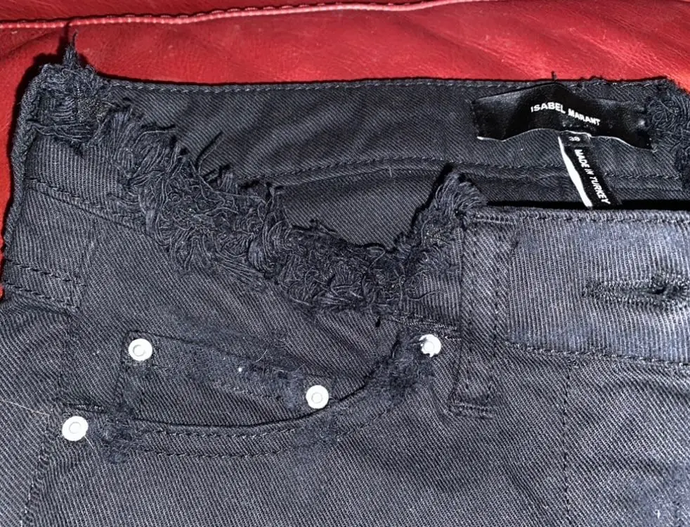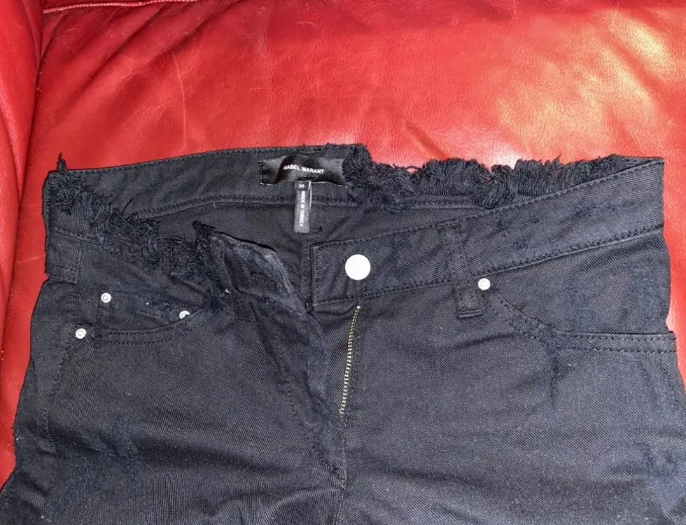 «Самые правильные» классические черные джинсы с деталями distressed и с идеальной посадкой ISABEL MARANT!!! Совершенно новые, без выходов. Винтажная и неуловимая версия с эффектом потертостей!!! Runway and Campaign Look!!! Узнаваемый Signature дизайн и силуэт!!! Необработанные края- Raw Hem. Маркировка размера: FR38. Подойдет и на размер меньше, и на размер больше. Материал очень хорошо тянется. Цвет: Faded Black. Знаменитый "washed cotton"-«застиранный хлопок» с «исчезающим» черным цветом!!! С каждой ноской и стиркой будет все лучше и лучше!!! Потертости станут более заметные и джинсы будут еще больше походить на real vintage find. Молниеносно станут любимым предметом Вашего гардероба!!!