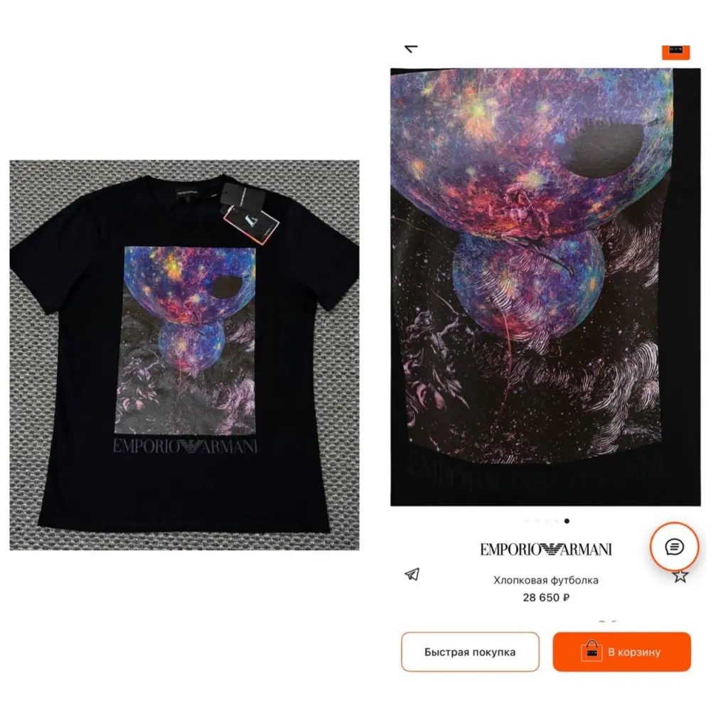 Цена в цум была 28.650₽ Новая Футболка Emporio Armani подойдет как девушке так и мужчине Размер L на 48-52 тянется не сковывает движения Замеры в комментариях Представляем вашему вниманию абсолютно новую, оригинальную футболку от всемирно известного итальянского бренда Emporio Armani. Эта модель идеально подойдет как девушке, так и мужчине, благодаря своему универсальному дизайну и крою унисекс. Размер: L (подойдет для размеров от 48 до 52). Комфорт: Материал отлично тянется и совершенно не сковывает движения, обеспечивая максимальный комфорт в течение всего дня. Особенности дизайна и материала: Эта футболка выполнена из тонкого и невероятно мягкого хлопка джерси, который практически не ощущается на теле. В рамках коллекции осень-зима Джорджио Армани украсил некоторые изделия абстрактными мотивами, вдохновленными знаками зодиака. Эта черная футболка украшена крупным принтом в виде такого мотива, дополненным логотипом бренда в тон. Изначальная цена в ЦУМе составляла 28.650₽. Мы предлагаем эту уникальную вещь по привлекательной цене. Гарантируем, что все представленные в нашем профиле вещи являются подлинными оригиналами. Для связи: Пишите нам в любое время (24/7), мы постараемся ответить вам максимально быстро