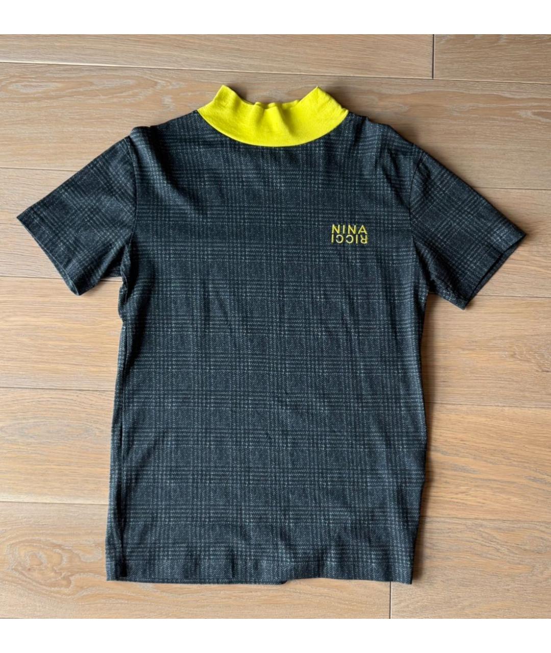 Стильная дизайнерская футболка от NINA RICCI. Черная ткань с тонким клетчатым узором и ярким акцентом — контрастным воротником лимонного цвета и с вышитым логотипом. Идеально сочетается как с джинсами, так и с более строгими элементами гардероба.