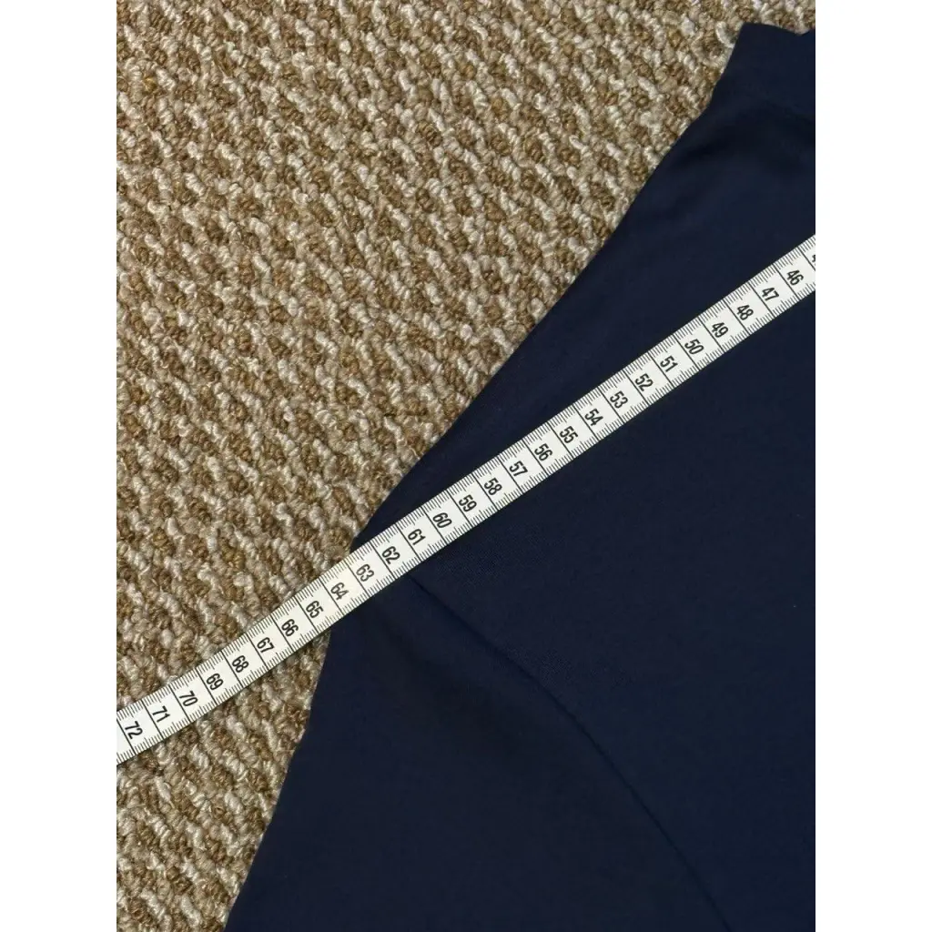 Мастера марки изготовили темно-синюю футболку из мягкого джерси с шелковистой фактурой.