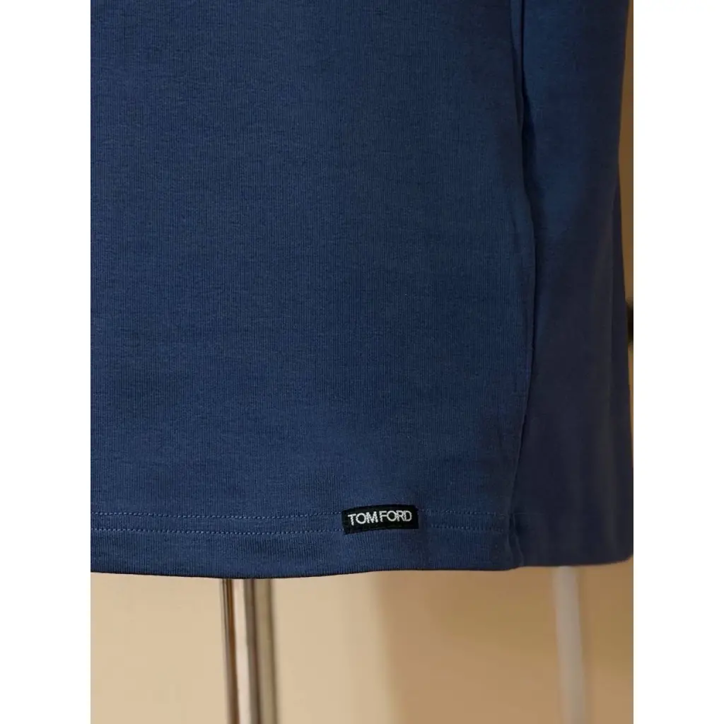 Базовая синяя футболка от Tom Ford снизу украшена нашивкой с логотипом бренда ! Отлично тянется подойдет и на больший размер смотрите по замерам