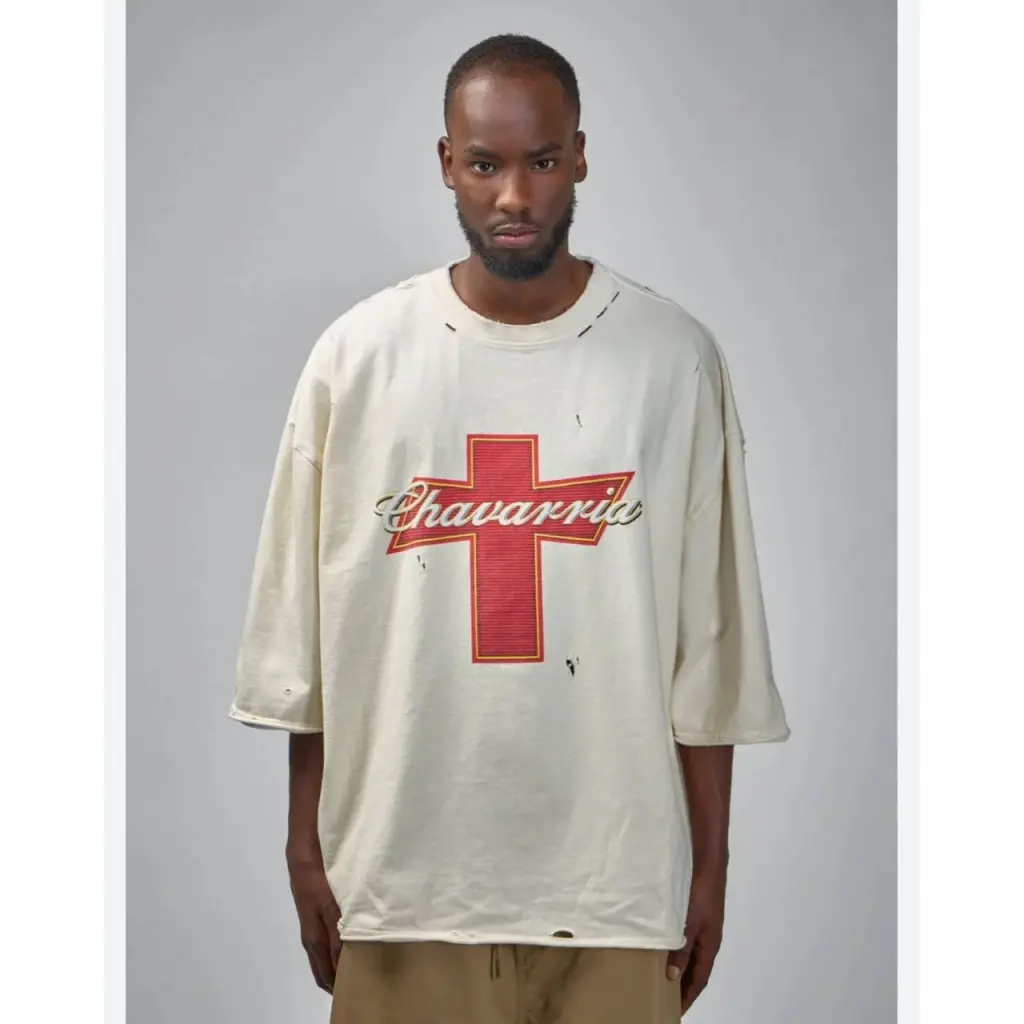 Willy Chavarria Destroyed Buffalo White Tee