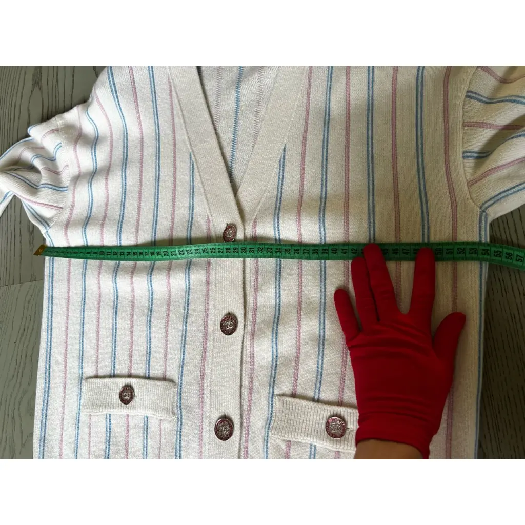 Кардиган Chanel Свежая коллекция Новый 100% кашемир Молочного цвета с потрясающе эффектными пуговицами, очень удачное цветовое сочетание, шикарно смотрится даже под простые джинсы Маркировка 36fr, на 40-44 Длина 70см