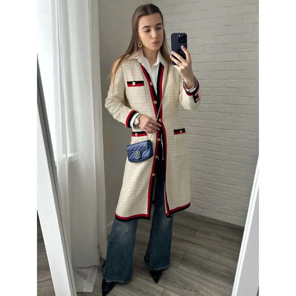 Продам твидовый кардиган/пальто/платье Gucci Tweed Pattern Coat. В идеальном состоянии. Был один выход. Но после хим.чистки на подкладе с внутренней стороны есть еле заметные разводы, их мало и почти не видно. Сохранилась бирка и запасная пуговица. Можно носить, как платье, как кардиган. По вашему желанию. Состав: 84% хлопок, 2% полиамид, 14% вискоза. Размер ЕU 42. Замеры: объем груди 84 см, длина рукава 66 см, длина по спинке 98,5 см.