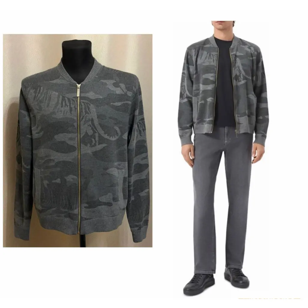Versace оригинал Кофта Versace оригинал 🐅🐅🐅🐅🐅🐅🐅🐅🐅🐅🐅🐅🐅🐅🐅🐅🐅🐅🐅🐅🐅 нет бирки с составом Есть зацеп на спине устранимо рублей 500 в ателье маленькая дырочка на крайнем фото видно учтено в цене В Реале смотрится классно