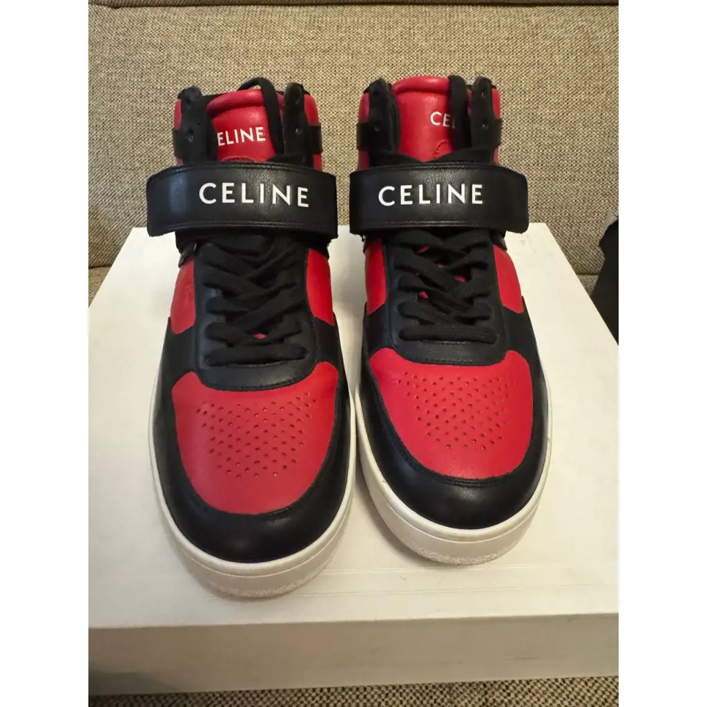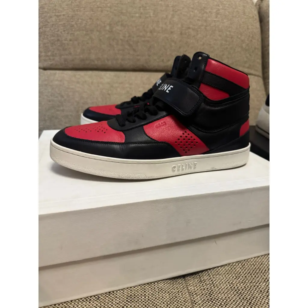 Высокие черно-красные кеды СТ-03 помогут поставить яркий акцент в образе и сделать его динамичнее. Для изготовления модели из осенне-зимней коллекции Эди Слиман выбрал мягкую гладкую кожу с легким блеском. Пару с перфорированным геометрическим узором на мысе и боковых панелях декорировали крупным логотипом на заднике и широком ремешке велькро, позволяющем добиться максимально комфортной посадки.
