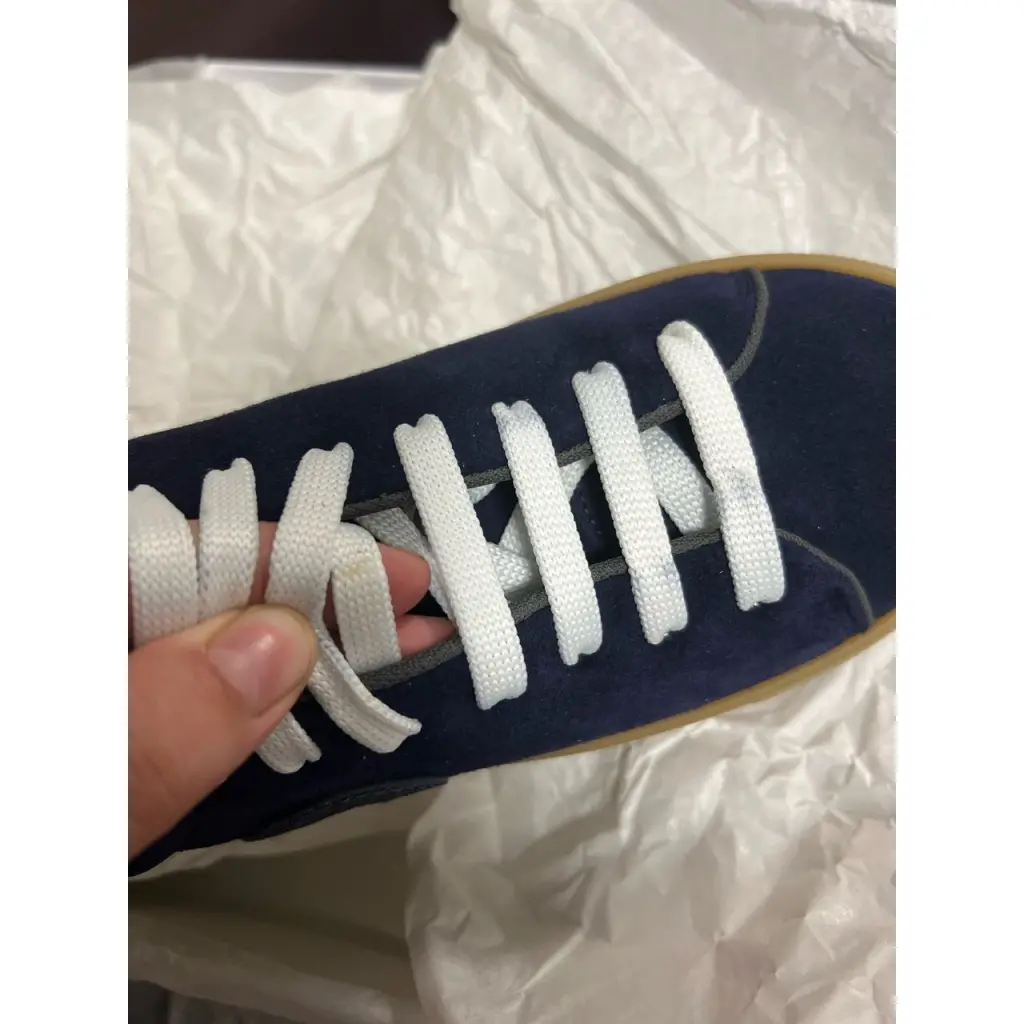 Есть дефект, грязные шнурки. Местами окрасились от замши, местами желтоватые пятна.